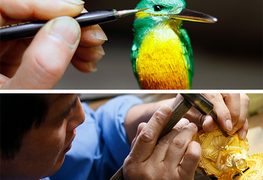 豊かな芸術性と多彩な技によって生み出されるその作品は、発表のたびに驚嘆の渦を巻き起こし、「内閣総理大臣賞」を筆頭に、多くの賞に輝いてきました。