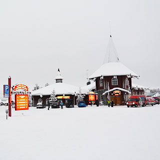 2枚目:<サンタクロース村>ロヴァニエミの郊外にあります。これはサンタクロースオフィス。幻想的で小さな村。村の横を北極線が引かれています。村は1年中クリスマスムード。