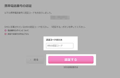 ⑦登録した携帯電話番号を使用して、ログインが出来るようになります。