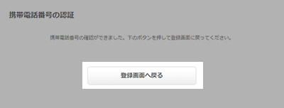 ⑤認証が完了したら、「登録画面に戻る」ボタンを押してください。