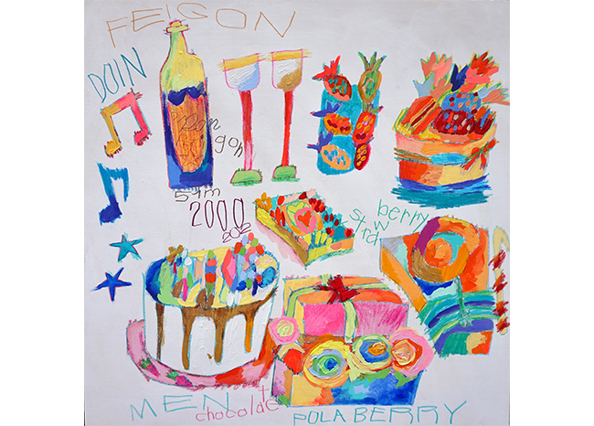 彼が描いたPartyの作品を、ハッピーな気持ちを持ち歩けるよう、プリントバッグのモチーフとしました。トートバッグの中からミニショルダーとスマホポーチが出てくる、にぎやかな、まるでパーティーの様なバッグを楽しんでください。