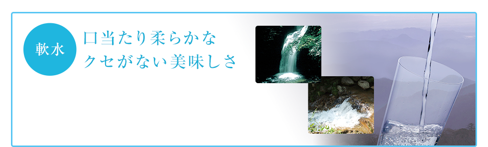 「リセットタイム」は毎日飲んで頂くお水。口当たりが柔らかく、クセのないおいしさが特徴です。飲料水としてはもちろん、料理やお茶のおいしさを引き立たせ、日本人の味覚にぴったりの天然水です。