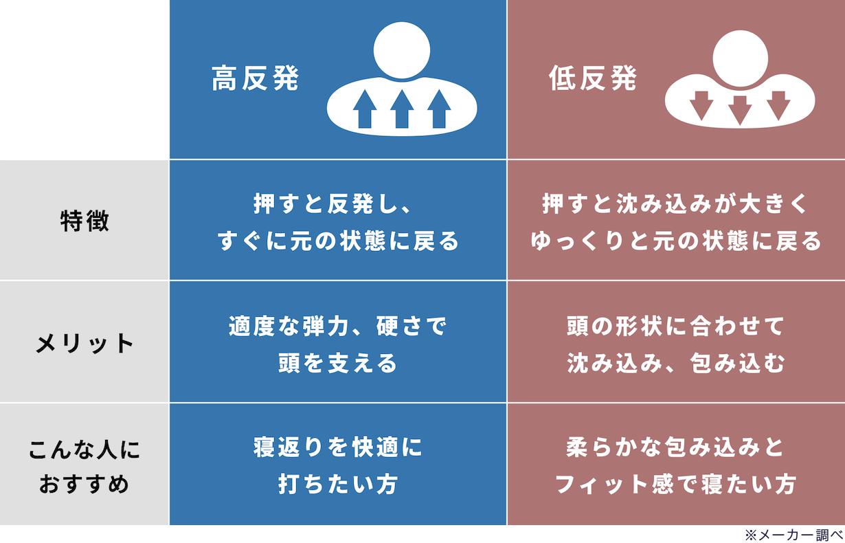 さらに低反発面では柔らかく包まれるような寝心地、高反発面では頭をしっかりと支え、寝姿勢を安定させることができる仕様になっているのも使い心地に繋がるポイントです。体形や寝姿勢、その日の気分に合わせて二種類の寝心地を選べるので、「感触が合わない」というストレスを感じにくく使えるのがいいですね。