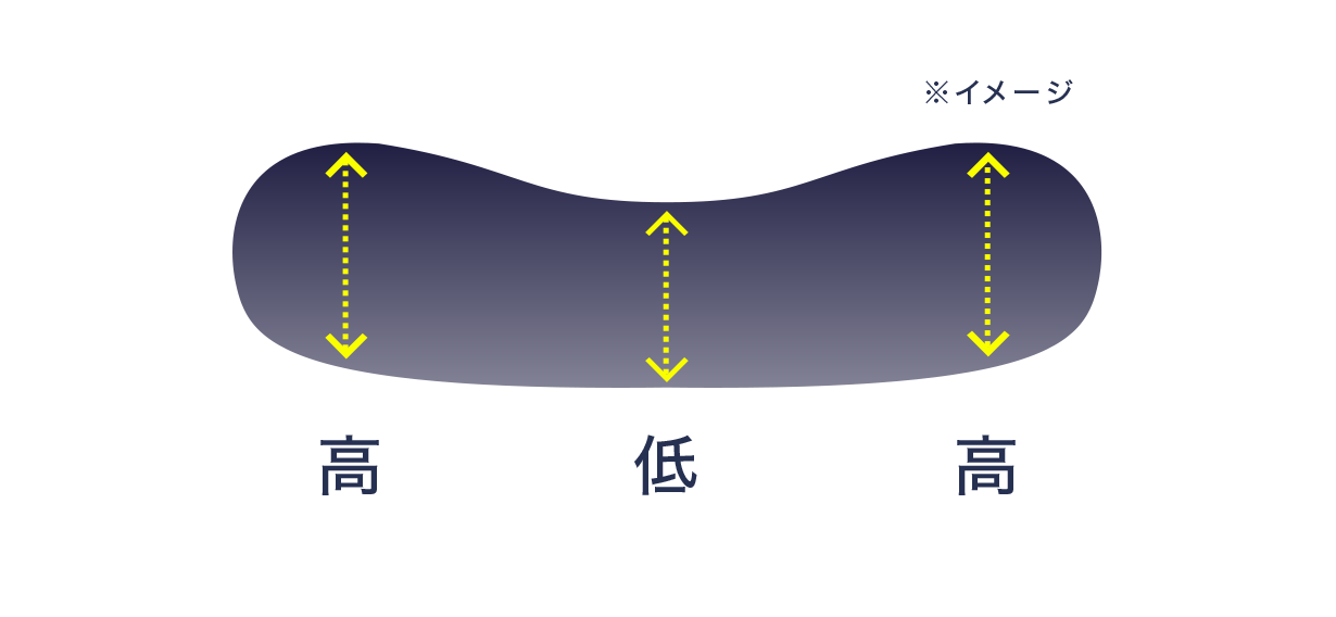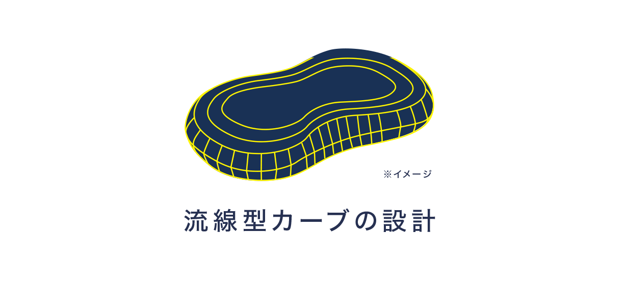 フィット感に優れた低反発素材はもちろんのこと、高反発素材においても、 カラダと枕の間に隙間が生まれにくい流線型カーブの設計により、首や肩へフィットし、快適な寝心地を実現。