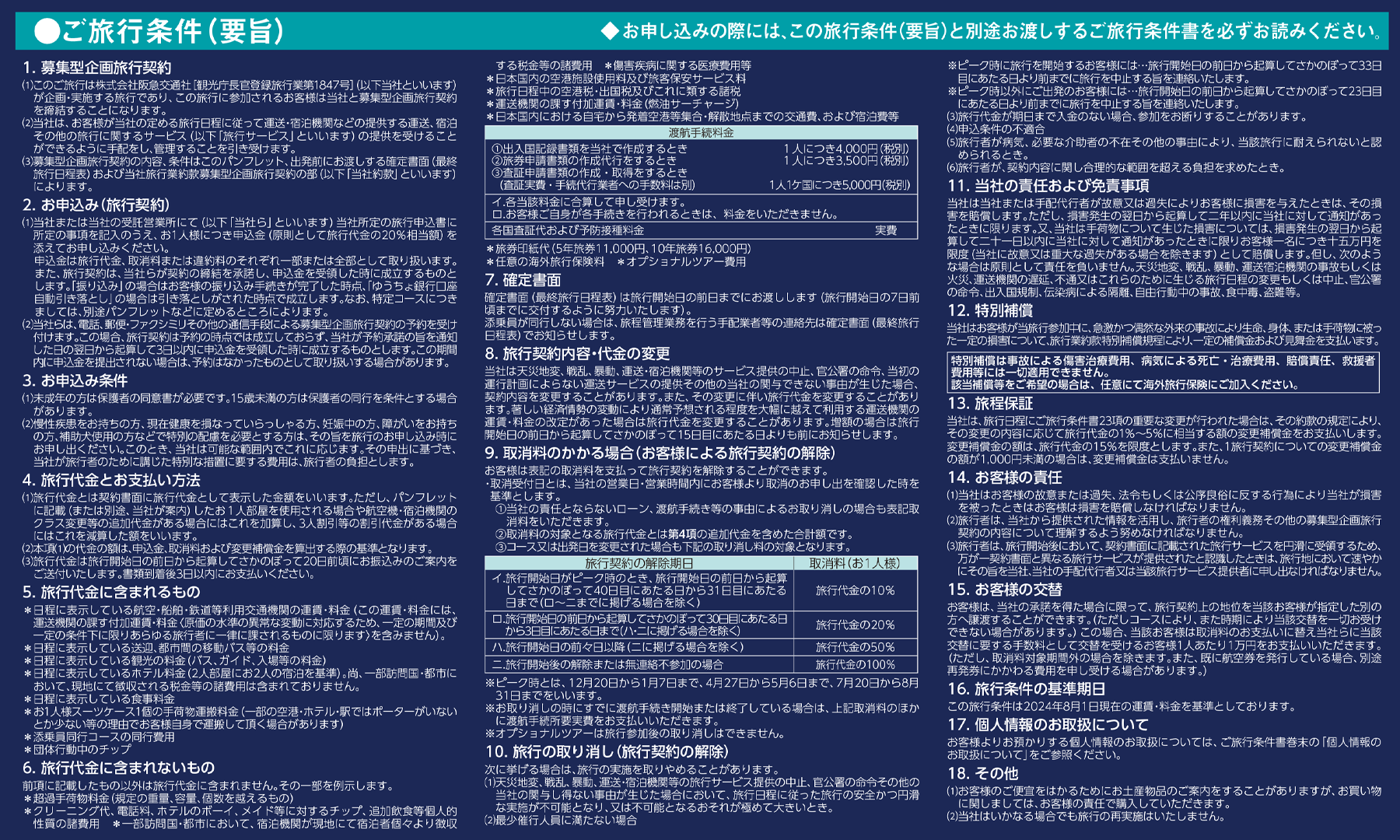 個人情報についてお客様の個人情報はお客様との連絡のために利用させていただくほか、お客様がお申し込みいただいた旅行において運送・宿泊機関等の提供するサービスの手配及び受領のための手続きに必要な範囲内で利用させていただきます。運送・宿泊機関などへの個人情報の提供について同意の上お申し込みいただきます。