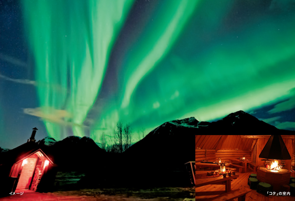 2・3泊目サーリセルカではお部屋からオーロラ観賞ができる(注1)オーロラキャビンに2連泊。