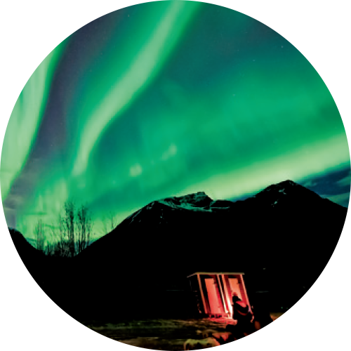 フィンランドを代表するオーロラリゾート地・サーリセルカでは、森の中に建つ全室コテージタイプの ホテル、ノーザンライトヴィレッジのオーロラキャビンに2連泊します。寒い冬空の下でオーロラを待つのではなく、 暖かい室内から満天の星を見上げ、快適なオーロラ観賞をお楽しみいただけます。(注1) オーロラを見ながら心地よく眠りにつける体験は、オーロラキャビンならではです。