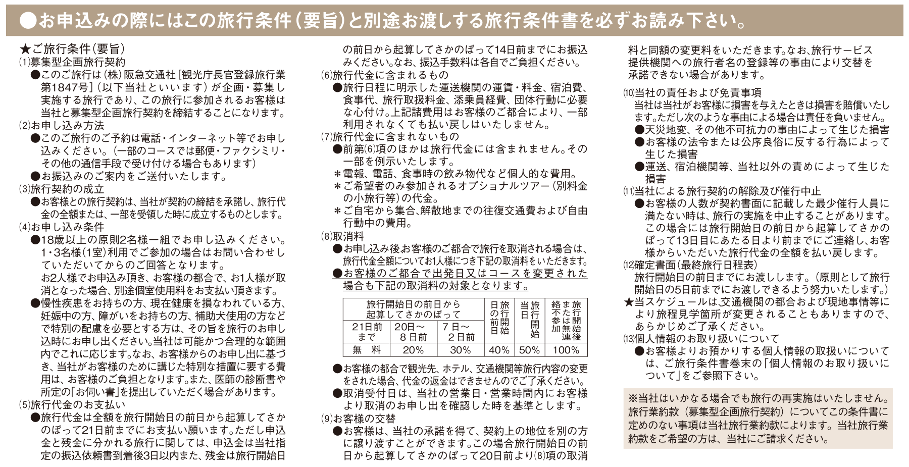 ※取消料の詳細も記載されておりますのでご確認ください。