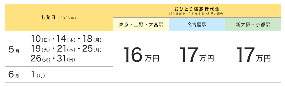 ■最少催行人員:各出発日共20名様
