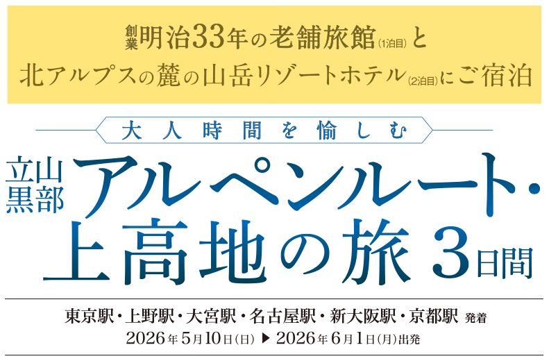 ※上記スケジュールは天候及び交通機関・道路状況等その他事情によって旅程が変更になる場合がございます。