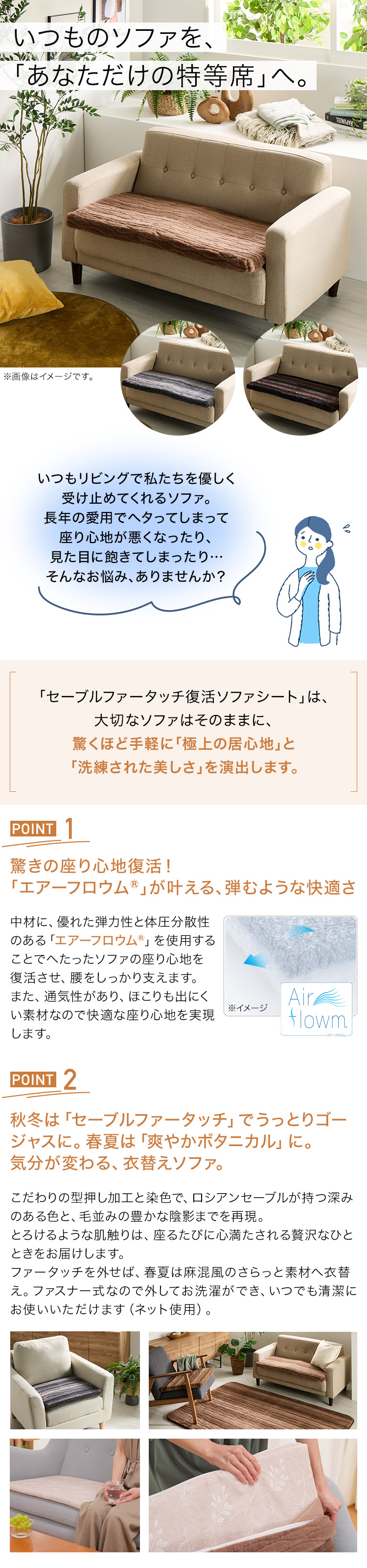 ソファーの座面に敷いて 快適な座り心地復活! セーブルファータッチ 復活ソファーシート <2人掛用>