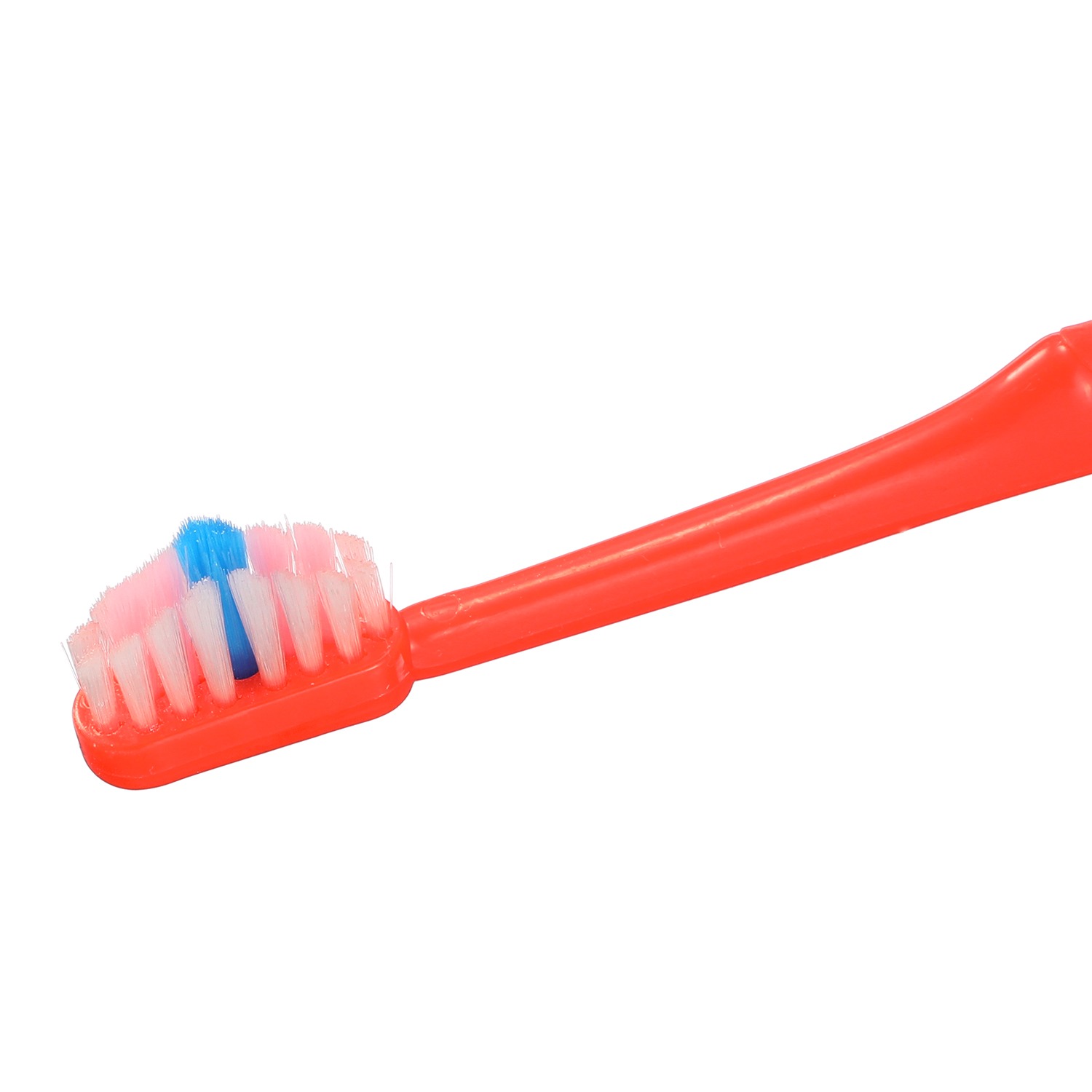 ピラミッドの形状とタフトが付いた、歯と歯の間の汚れを効率的にしっかり落とす歯ブラシです。