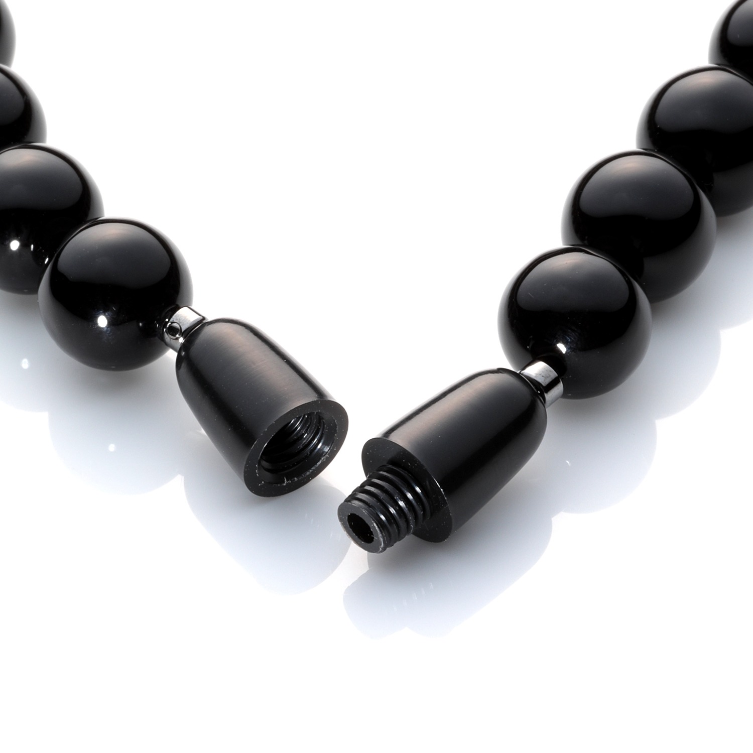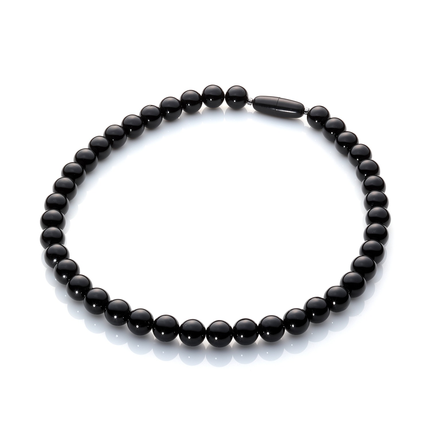 約10mm玉のボリュームのあるジェットの丸玉を連ね、より改まった風格漂う一品に仕上げています。