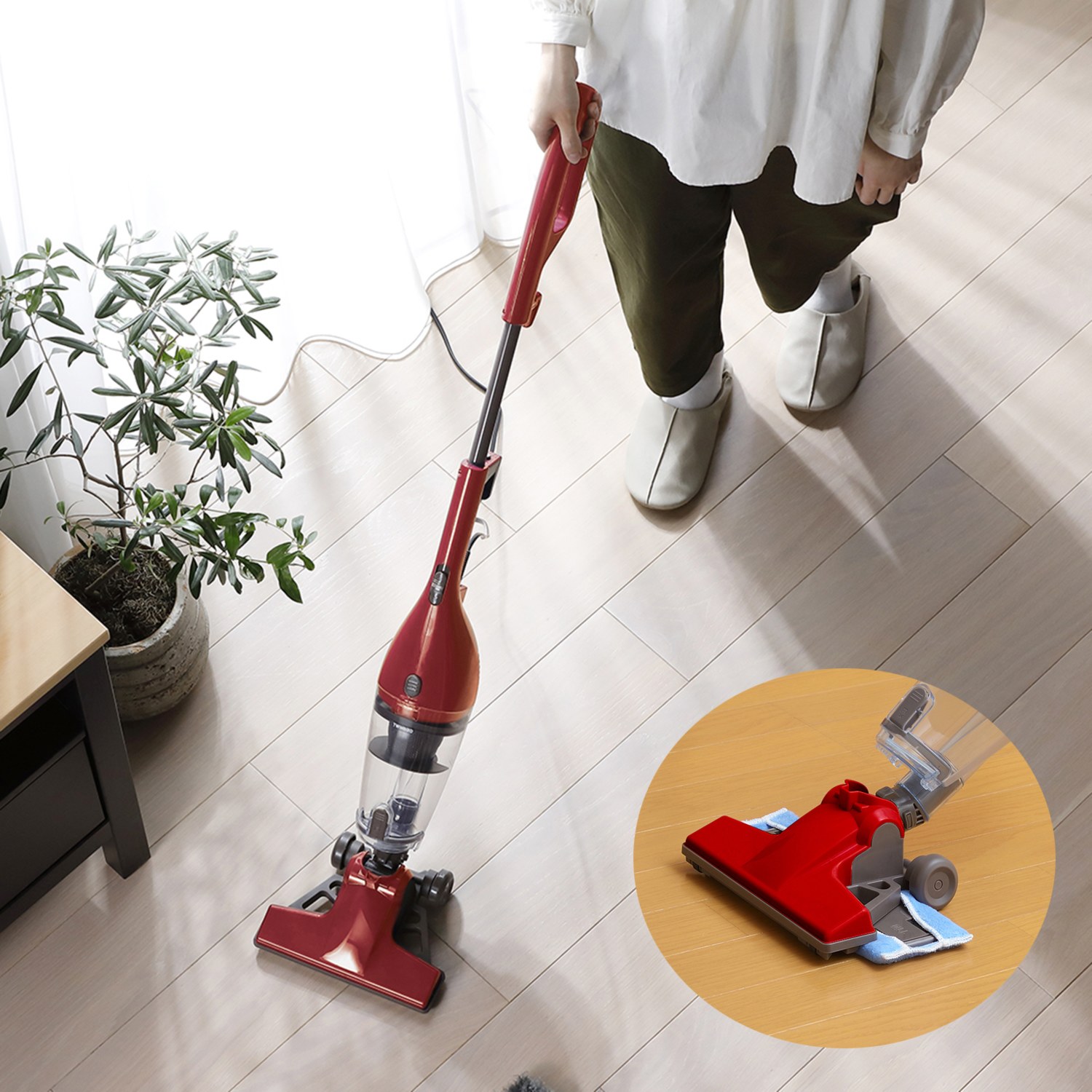 <ツインバード>より、吸い取りながら拭き掃除ができる