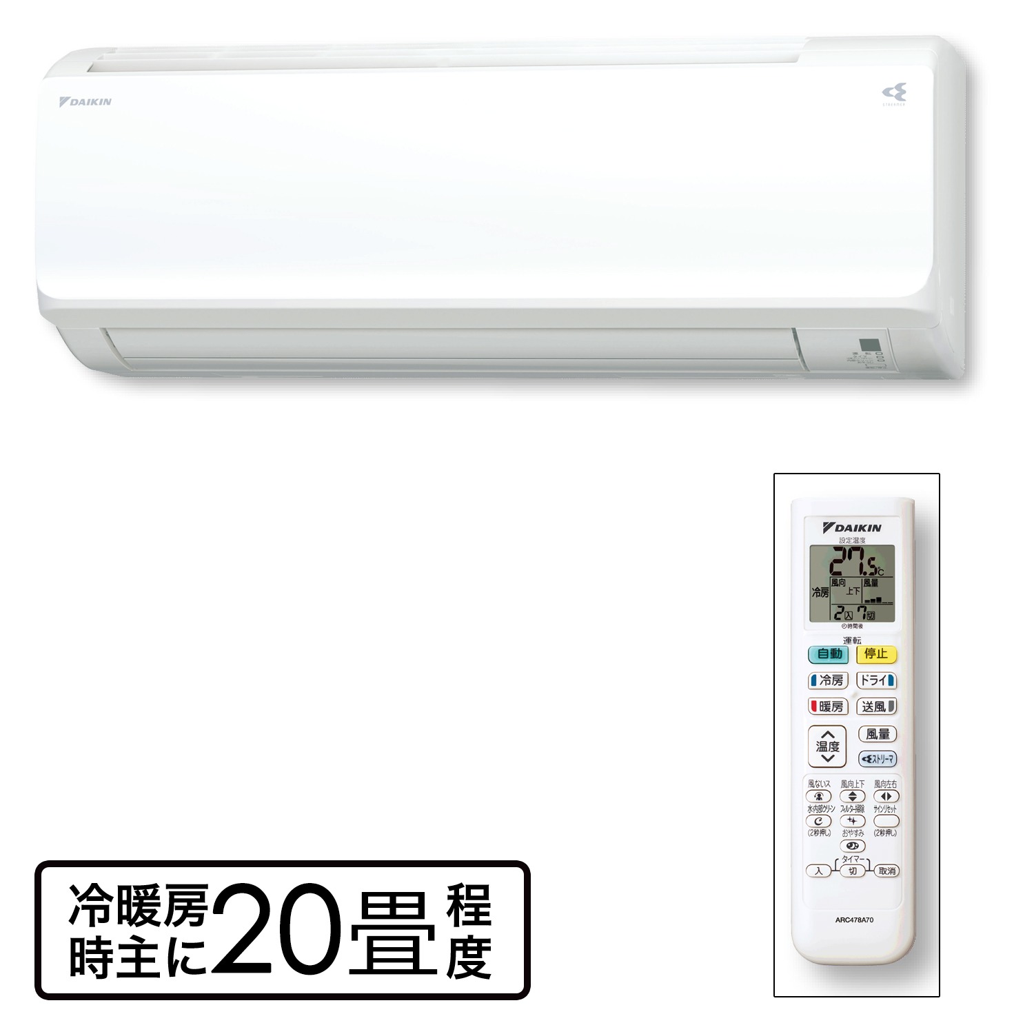 ・本体(型番:F63YTCXP‐W)、室外機(型番:R63YCXP)、集塵・脱臭フィルター、リモコン、単4形アルカリ乾電池×2(テスト用)、据付板、据付板取付ネジ×7、本体固定ネジ×3、断熱テープ、ドレンソケット
