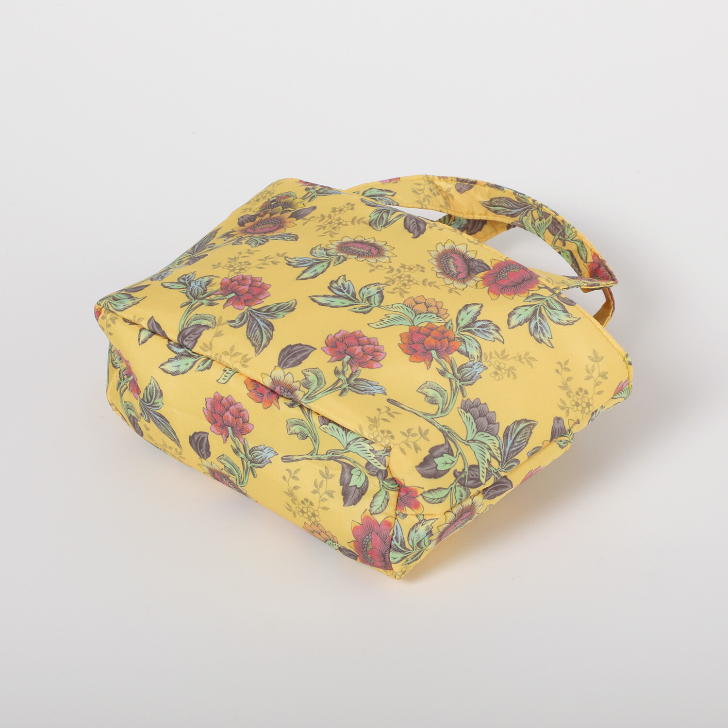 ハンドルが巾着式で絞るタイプの小型マイバッグ。