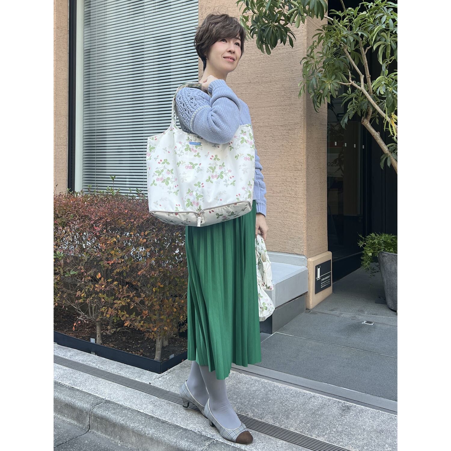 等使っています。グリーン系なので、購入した3点セットは落ち着いて溶け込んでいます。購入できてよかったです。大きいデイリーバックは70代ですが早速お買い物に活躍しています。