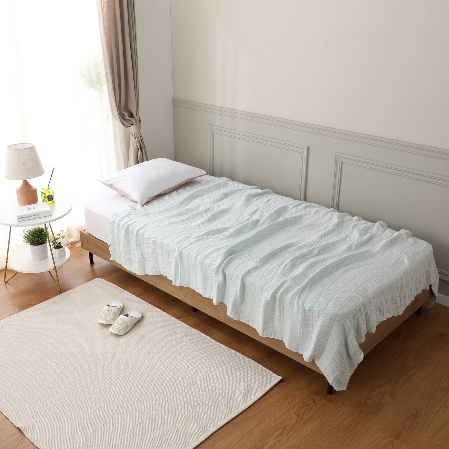 <快眠博士>の“とろけるふとん”シリーズより、ふわふわくしゅくしゅ特殊製法の3重織りガーゼを使用したガーゼケット。