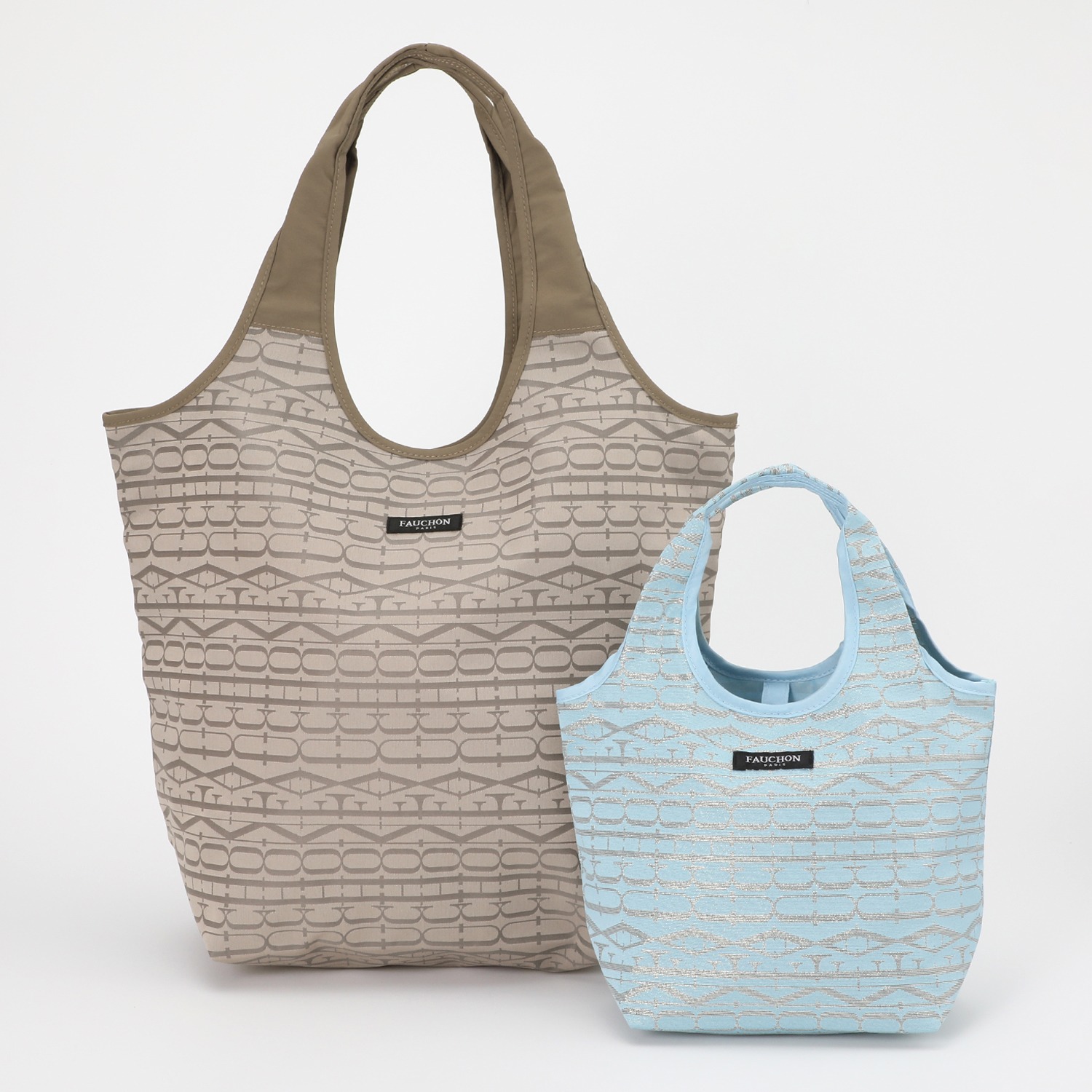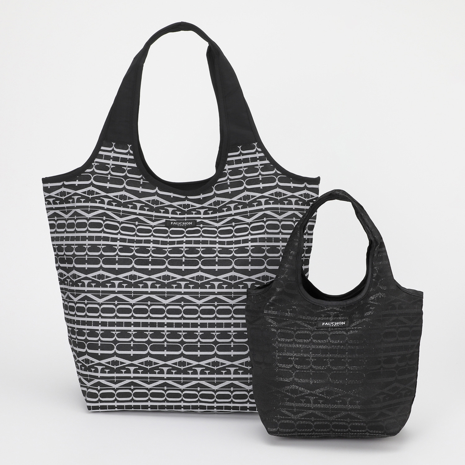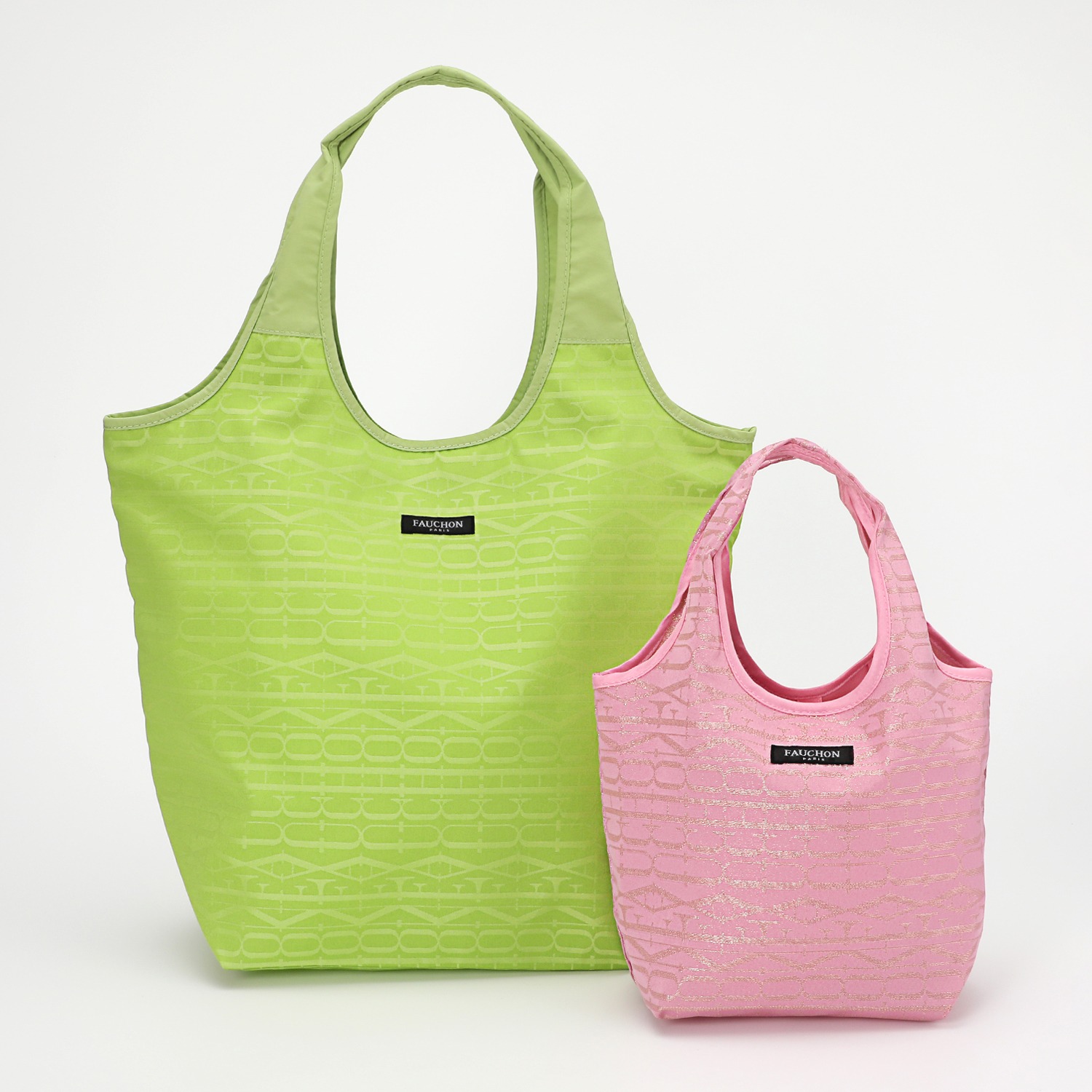 パリ、マドレーヌ広場の一角にある100年以上の歴史を持つおしゃれなフードブティック<フォション>より、ブランドロゴをジャガード織りで表現した生地を用いたマイバッグ大小2個セットです。