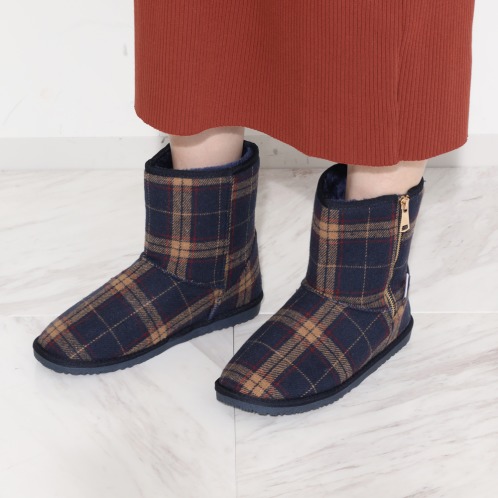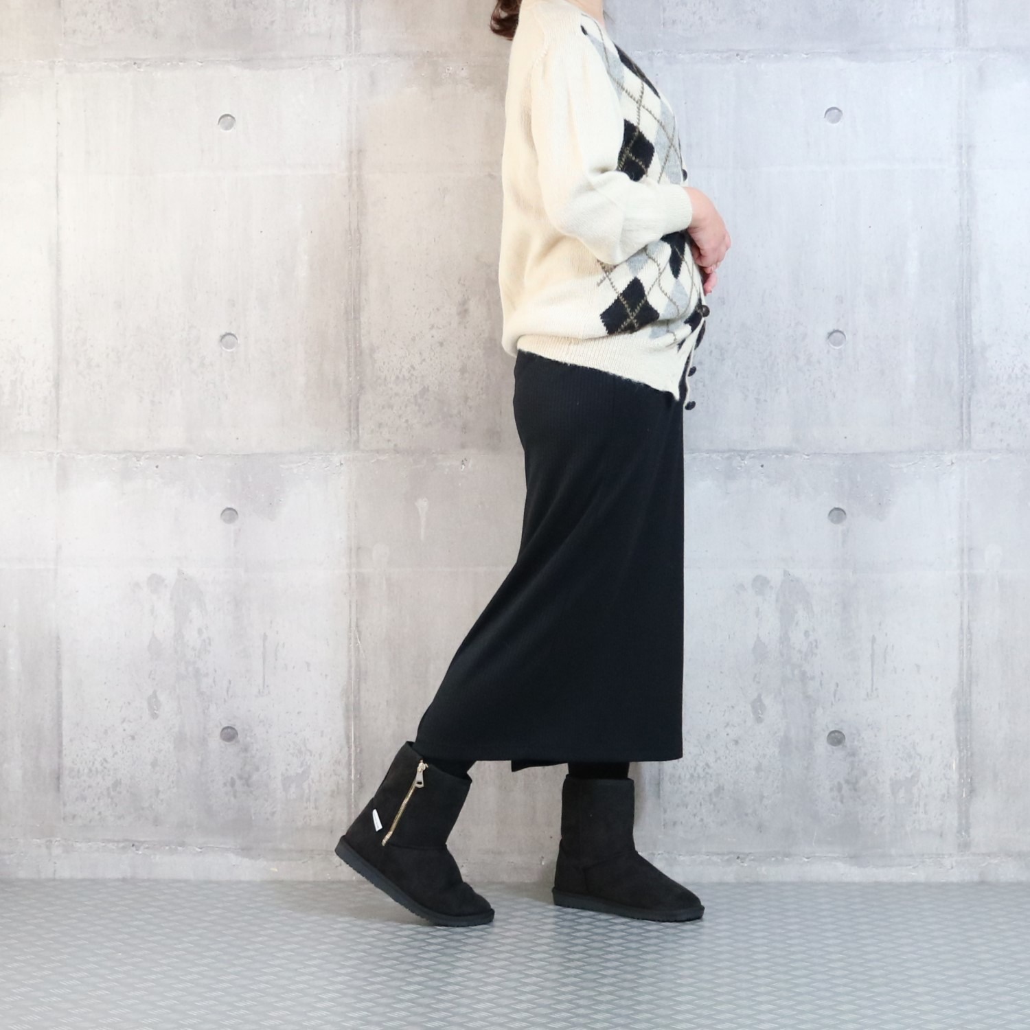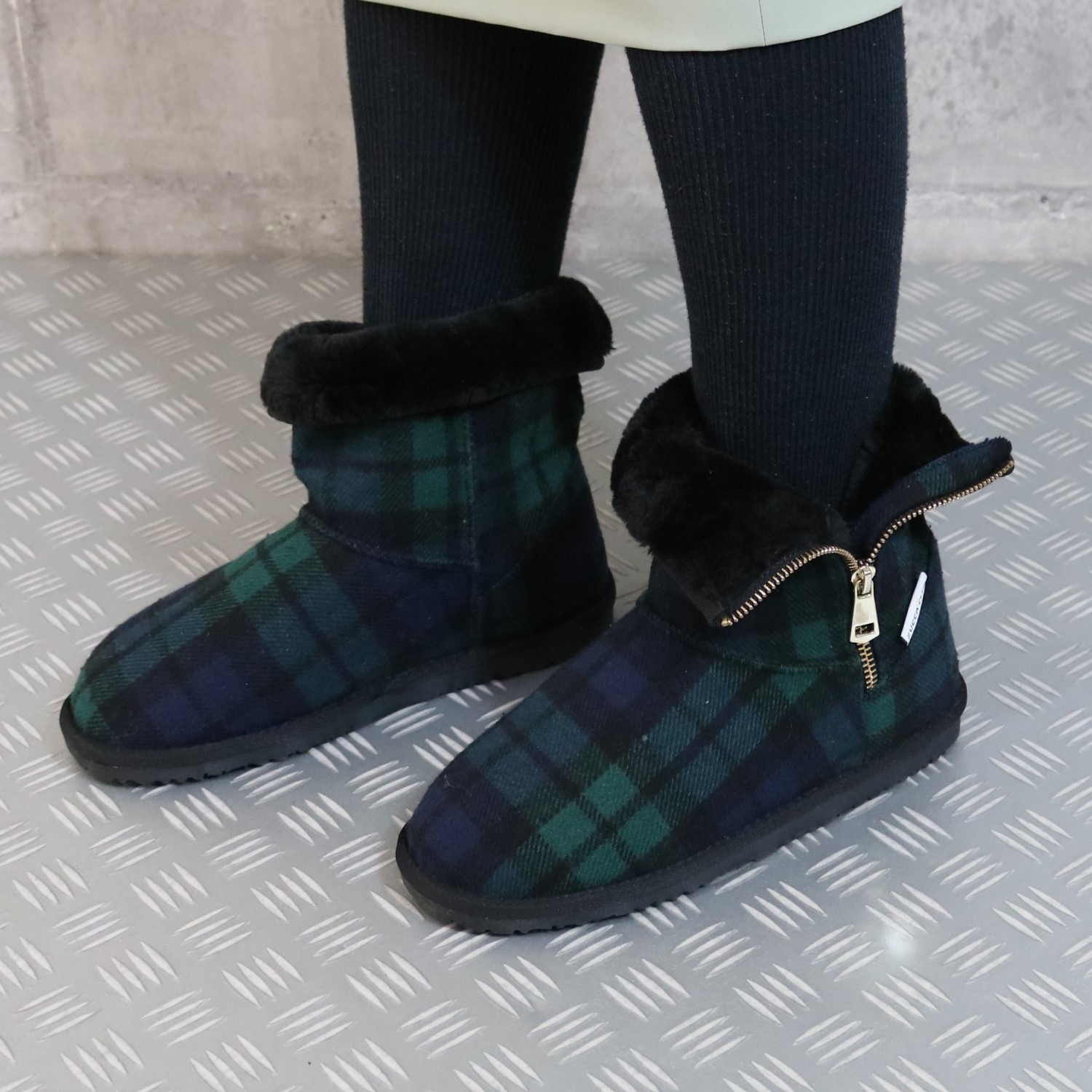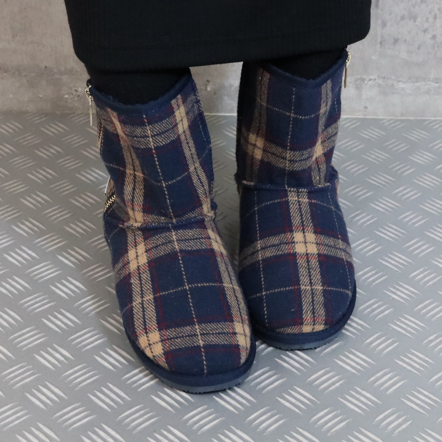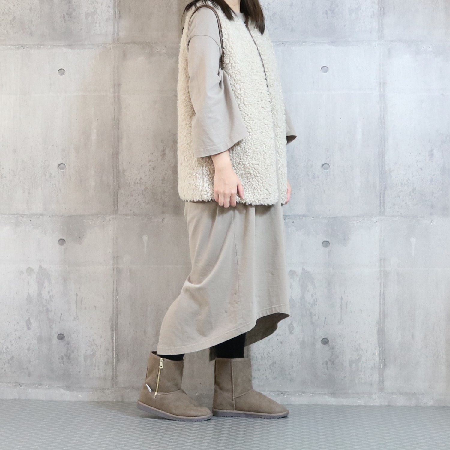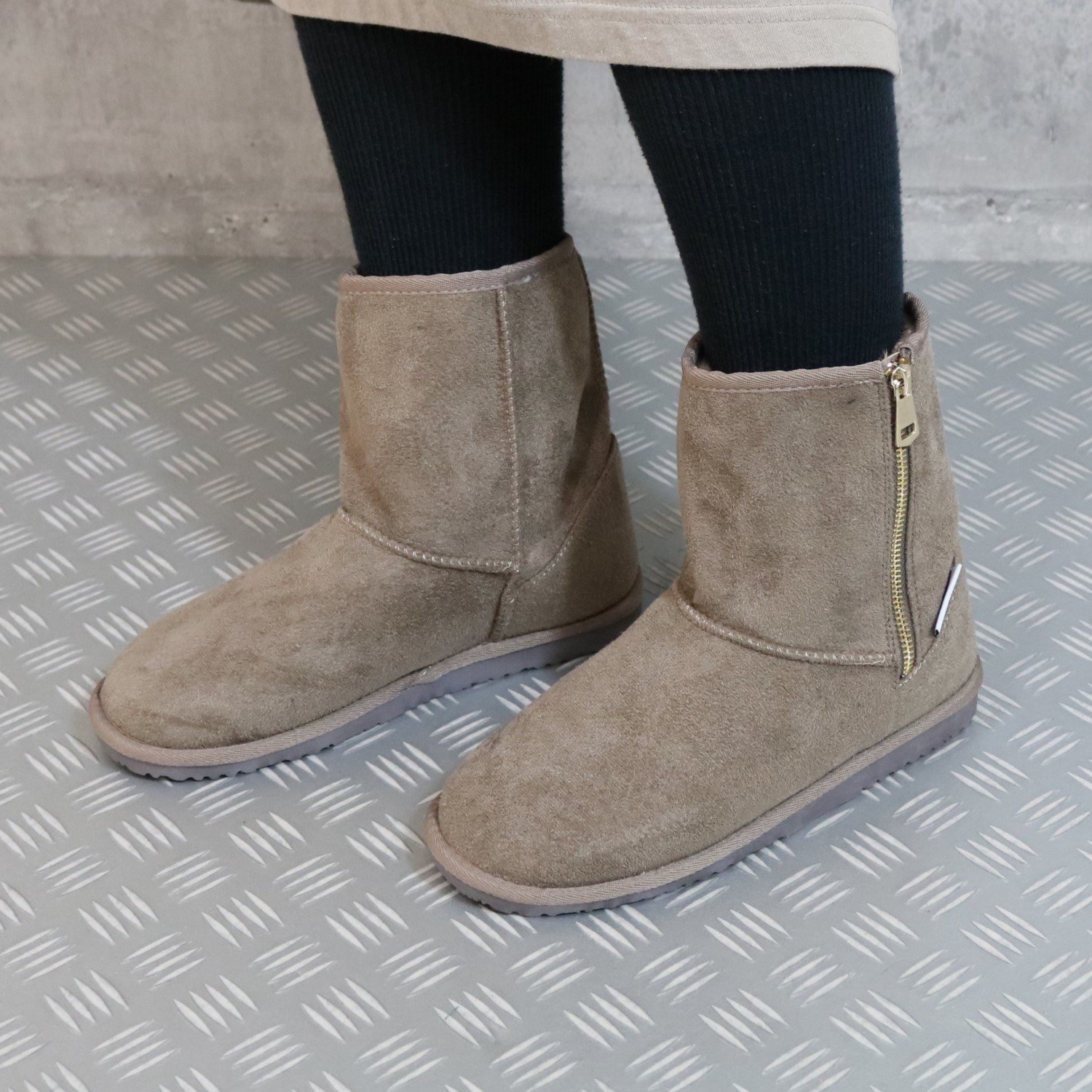 アッパーになめらかなフェイクスエード生地を用いた、かわいらしいブーツです。