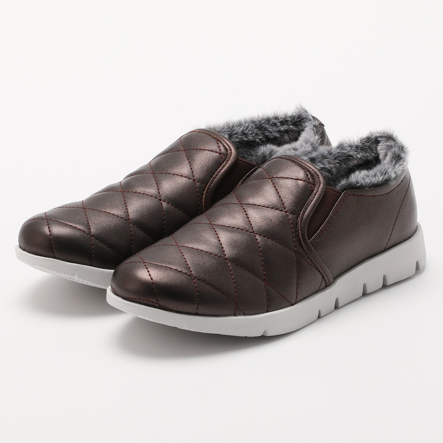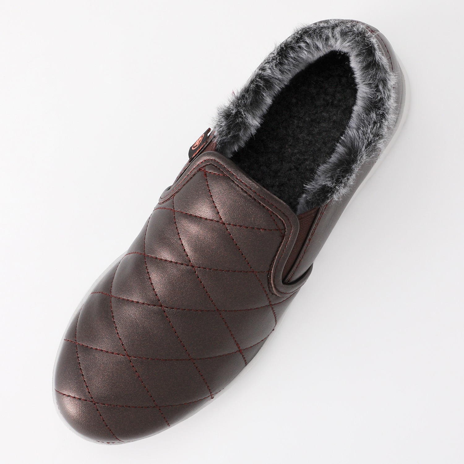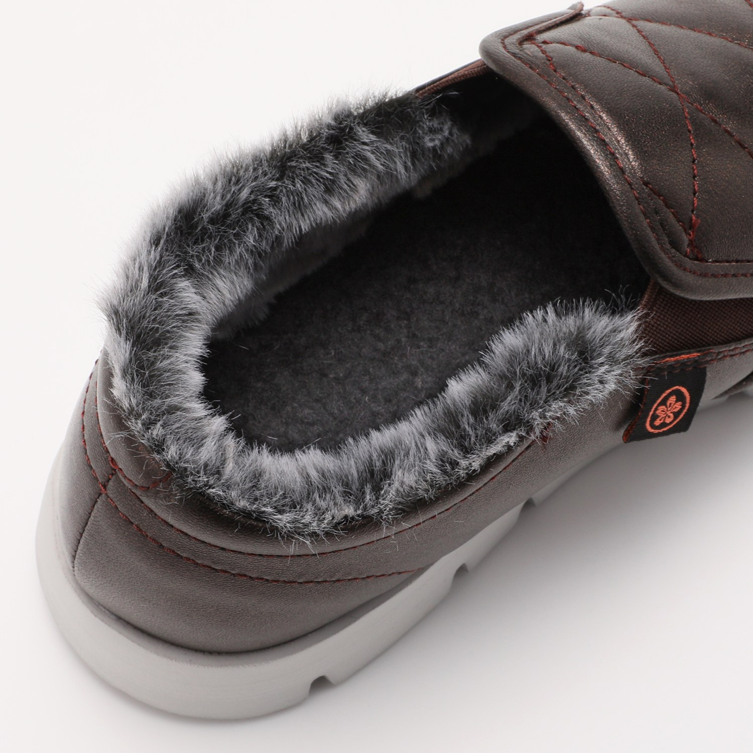 ライニングの履き口後部に肌触りの良いフェイクファー、インソールの表面にボアを採用した、温かみのあるつくりです。