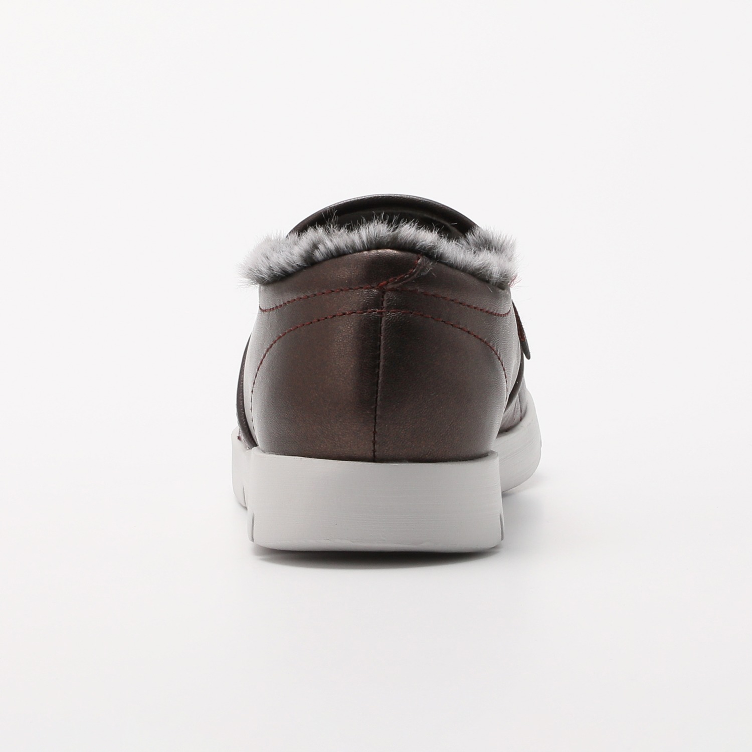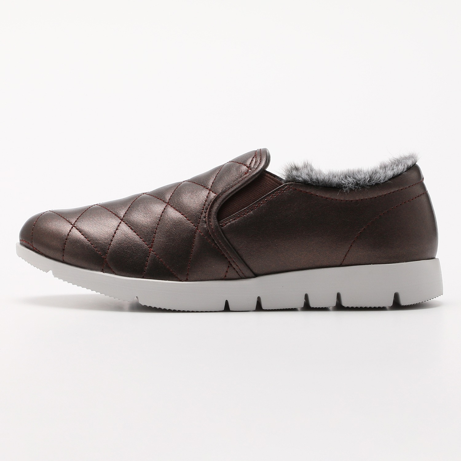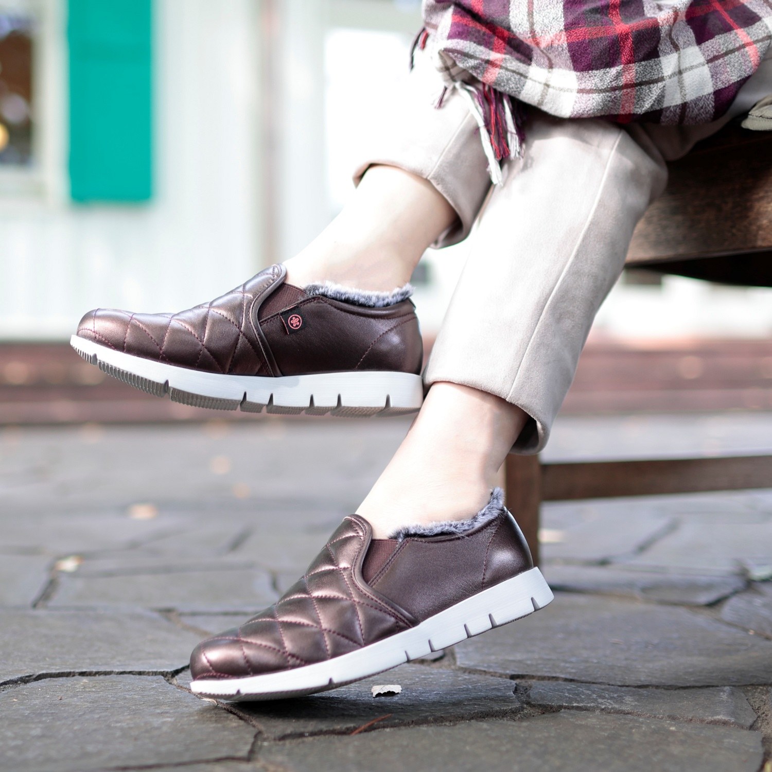 ライニングの履き口後部に肌触りの良いフェイクファー、インソールの表面にボアを採用した、温かみのあるつくりです。
