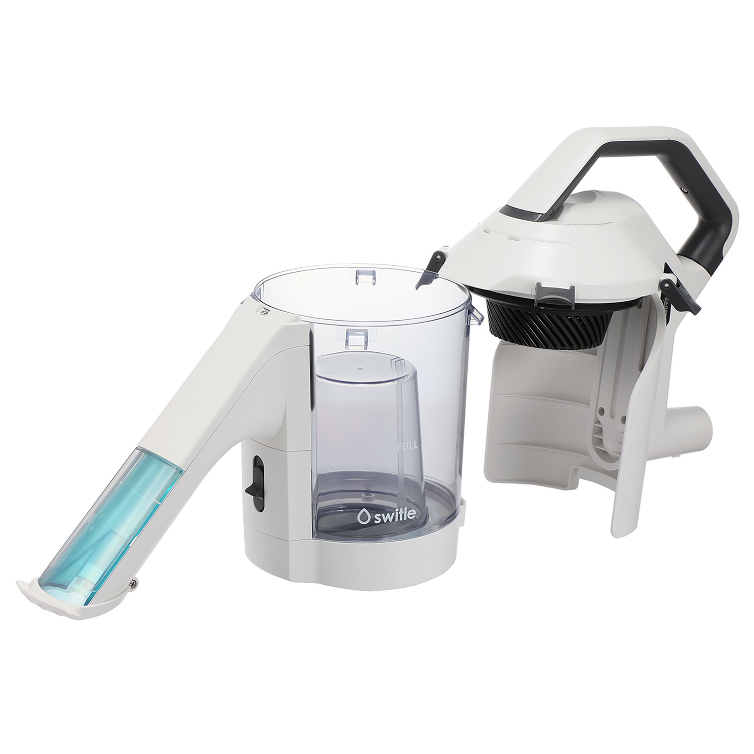 本体自体に電源や動力はなく、掃除機の吸引力を利用して可動するため、掃除機に連結するだけ!逆噴射ターボファンユニットにより汚水と空気を分離し、空気の壁で汚水が戻るのを防止。