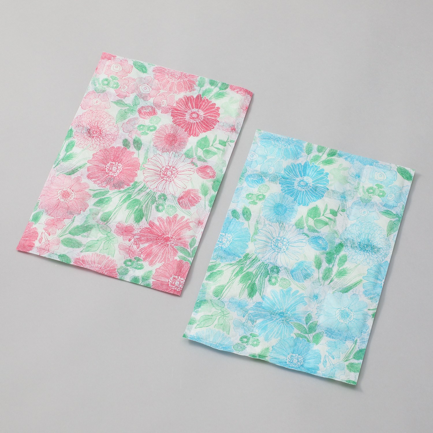不織布のデザインは手書きタッチの“ハーブとガーベラ”をイメージした華やかなデザイン。