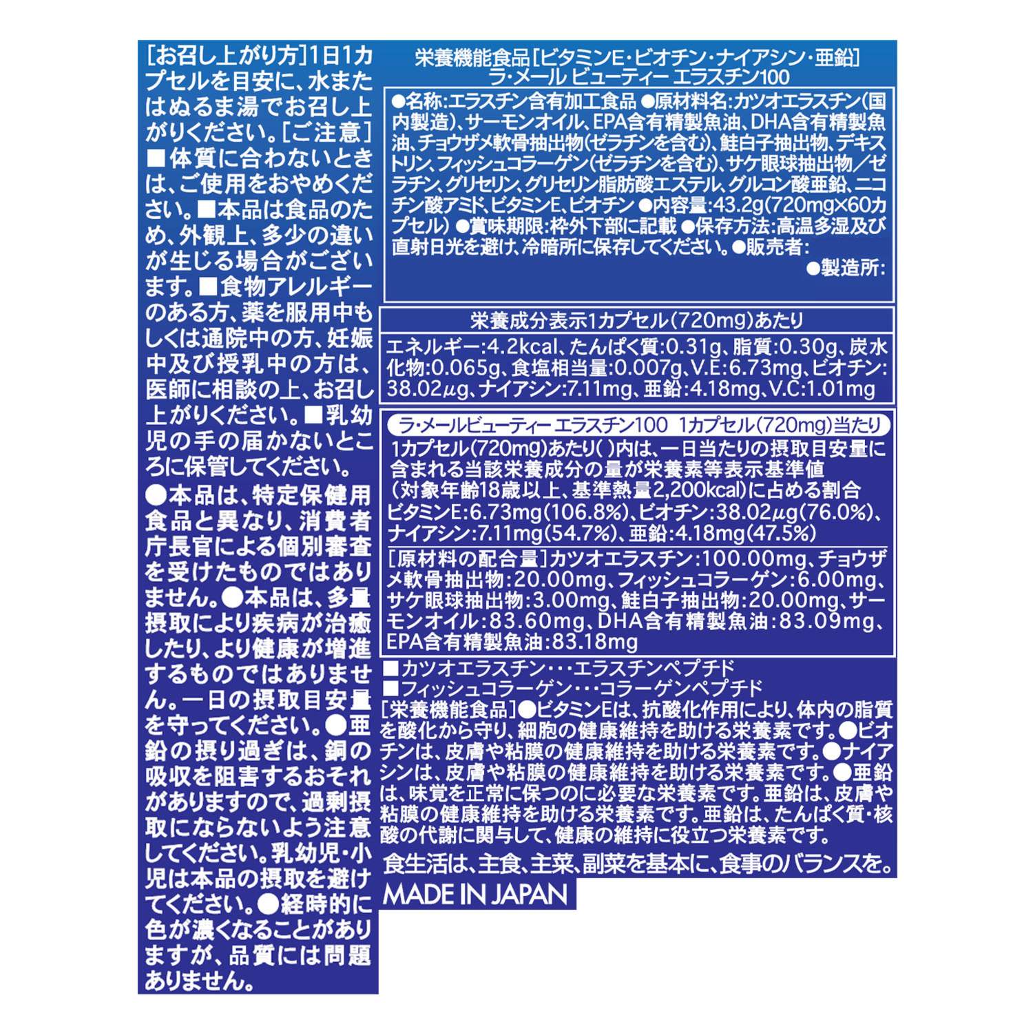主成分として、魚由来の海の恵みにこだわったカツオエラスチン原料を使用した美容サプリ「ラ・メール ビューティーエラスチン100」のご紹介です。