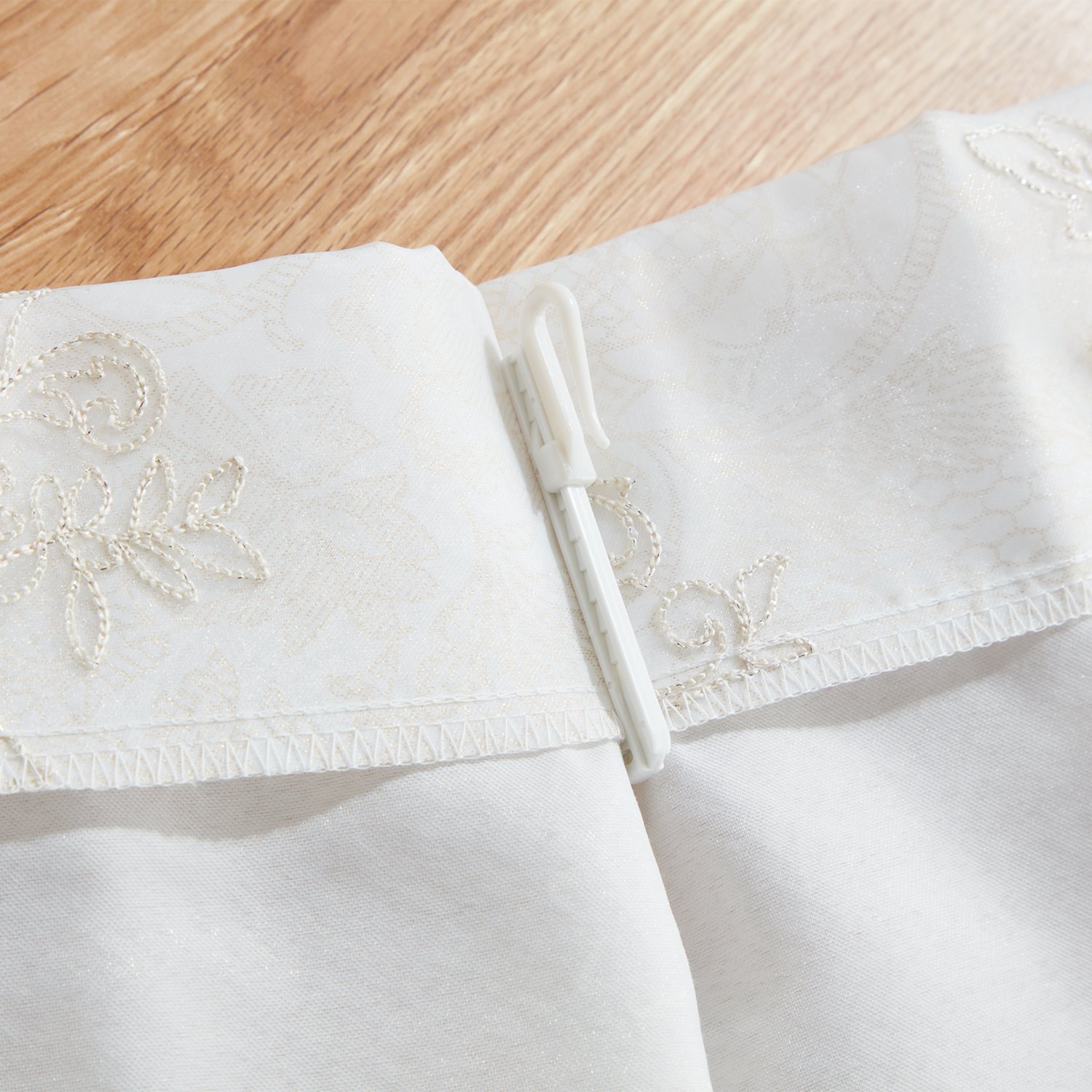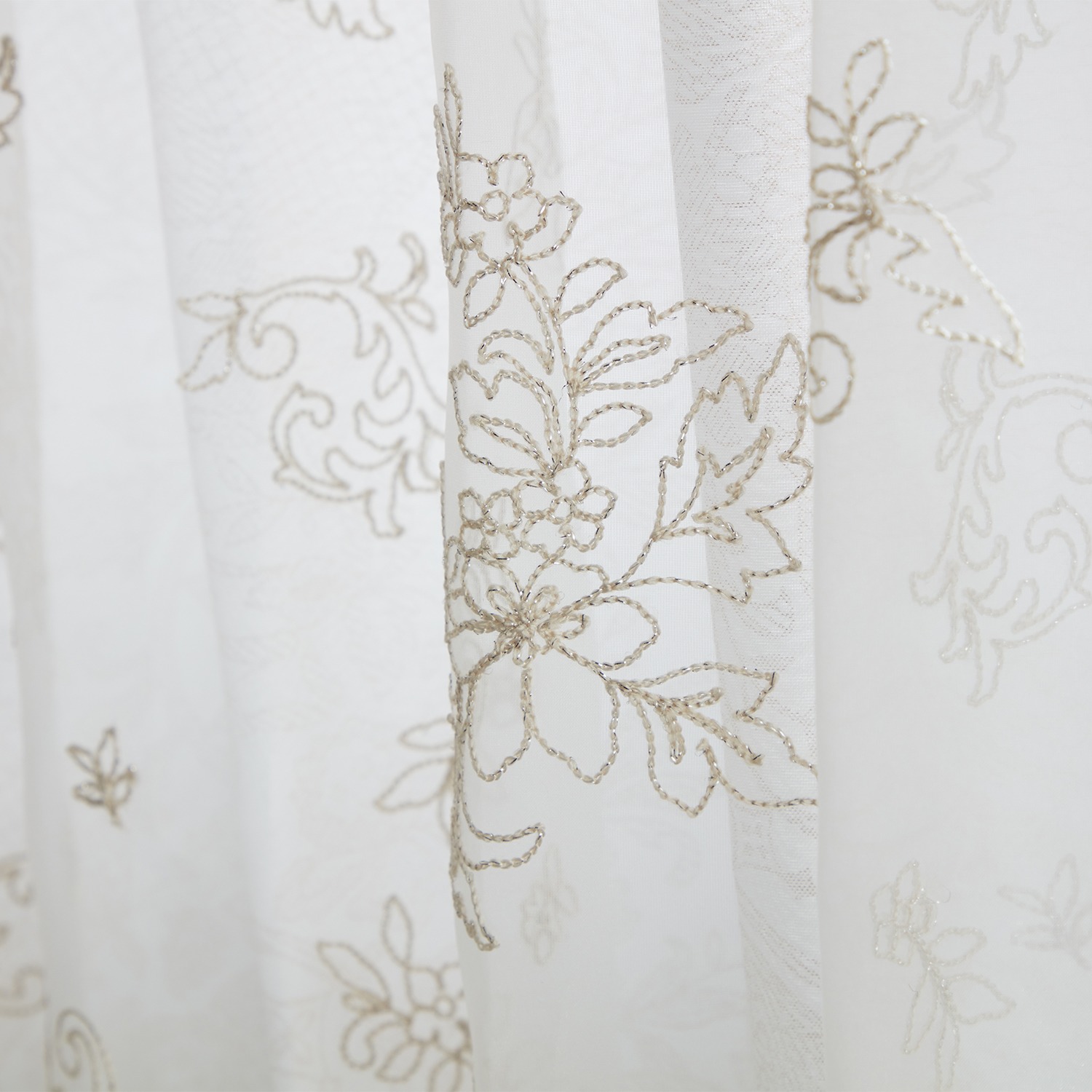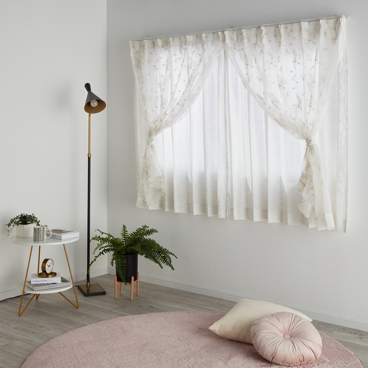 <100×133cm>ドレッシー UVカット箔プリント生地 &刺しゅうオーガンジー 二重レースカーテン2枚組 “フルール”