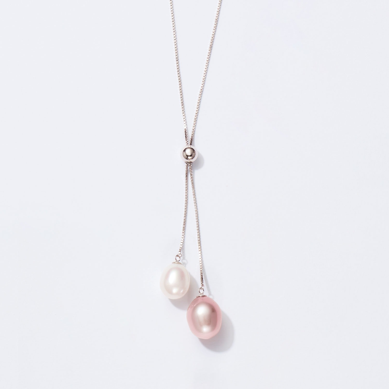 ボックスチェーンの先端にあしらったパールが、しずくのような美しいラインを描きます。