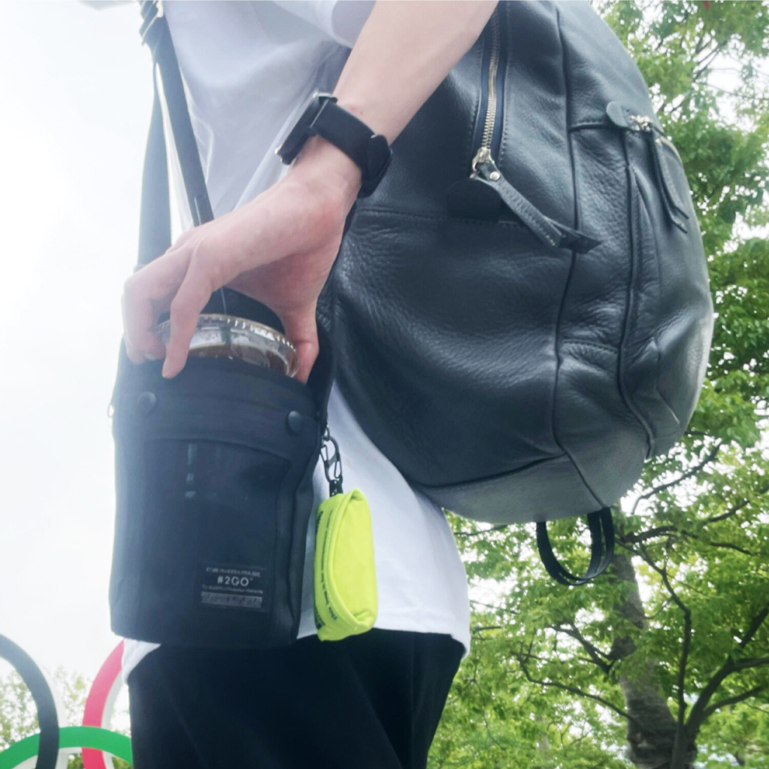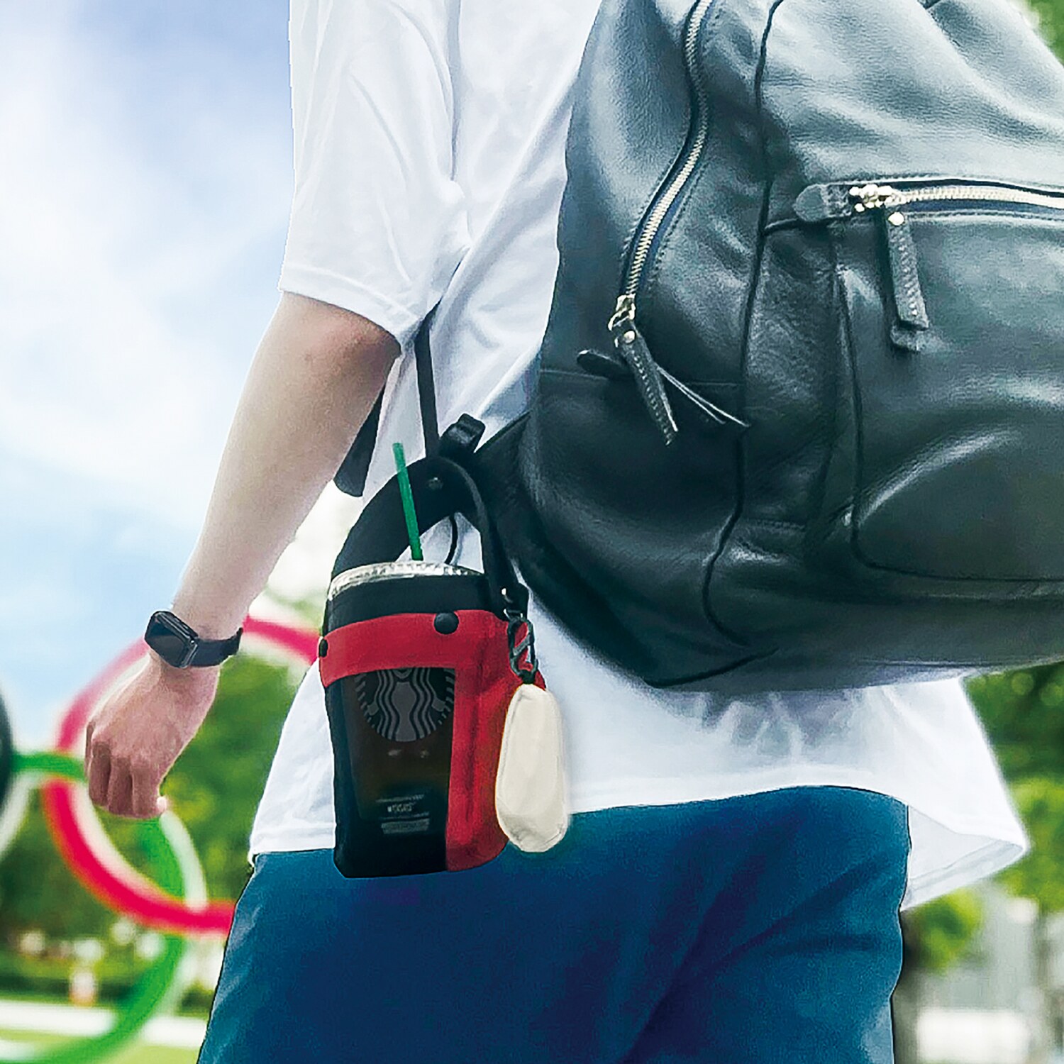 ドリンクホルダーとして、カフェやコンビニのカップドリンクも気軽に持ち歩きできます。