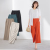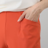 有木パンツは、何本も購入していますが、今回オランジェ色が気に入って購入しました。持っているトップスが柄物でオレンジ系が多いので合わせ易いです。シワにならない点も良いですね。