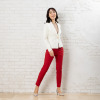 総ゴム仕様のウエストは締め付けを感じにくく、楽なのにゴムジワができにくいのでダボ付きにくいすっきりとしたラインを実現。