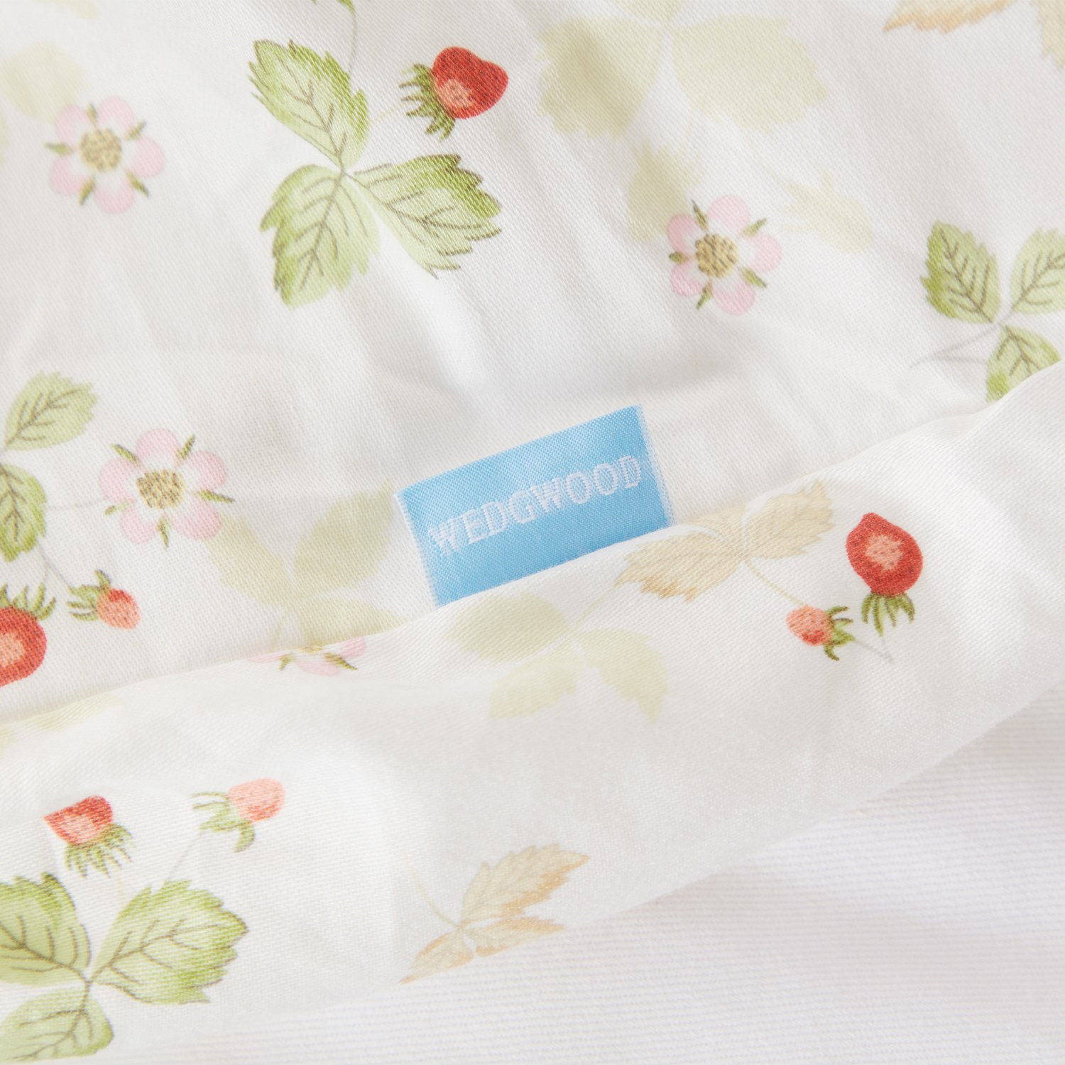 <ウェッジウッド>の代表的かつ人気のデザイン“ワイルドストロベリー”柄をほどこした、コットン100%のシーツをご紹介します。