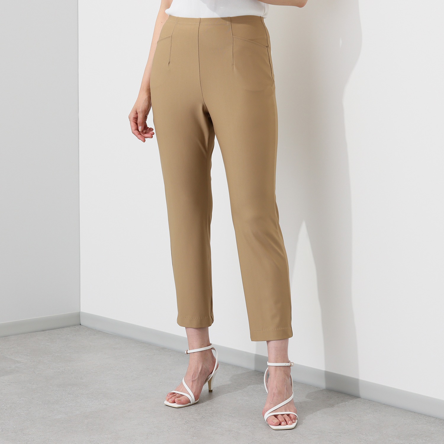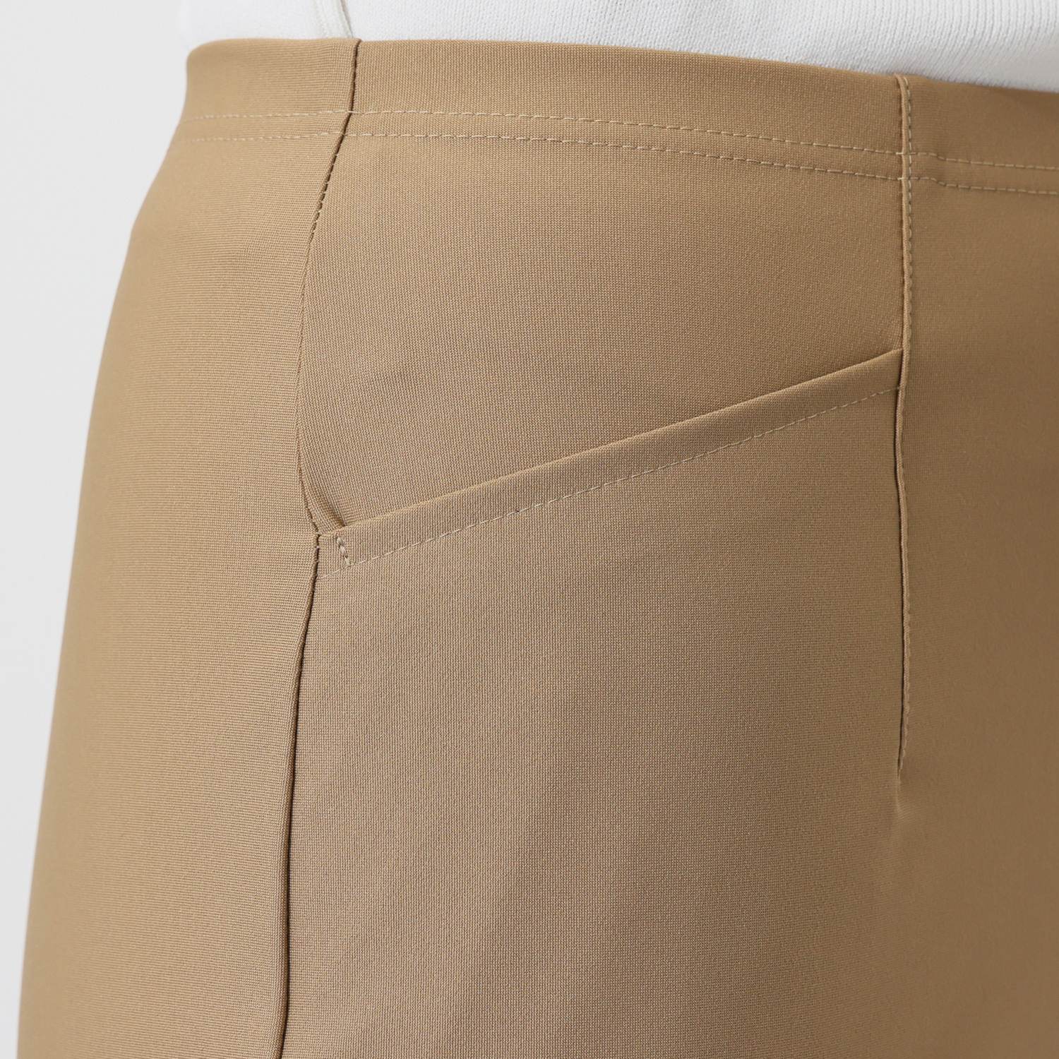 ウエストは締め付けや圧迫感を軽減する総ゴム仕様で、楽なのにゴムジワやダボつきができにくいように仕上げました。