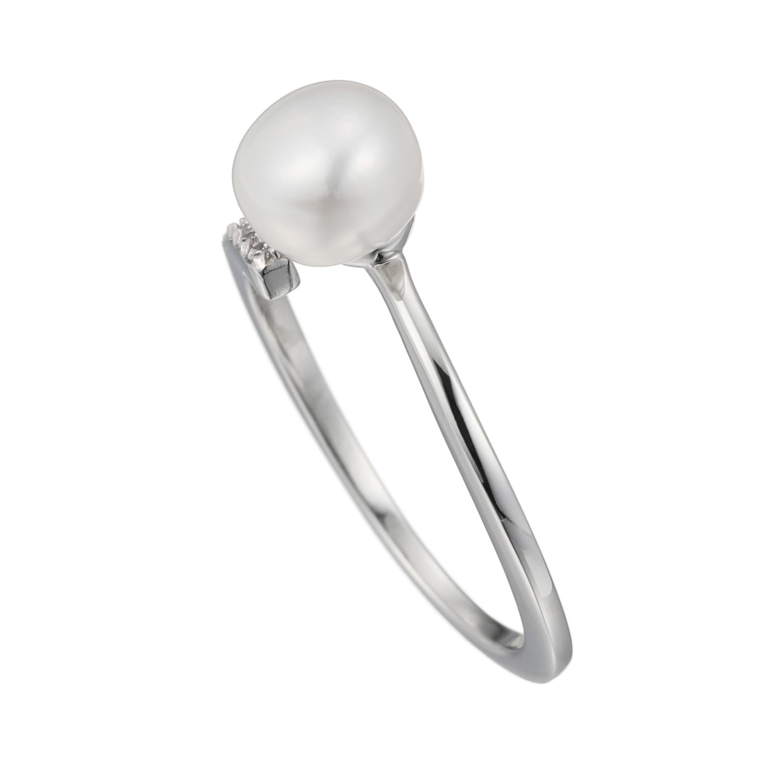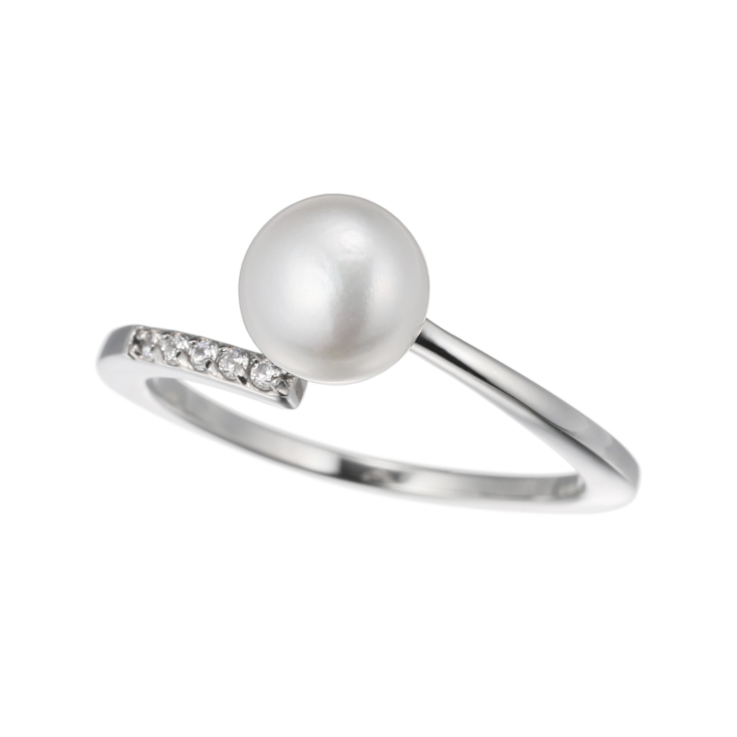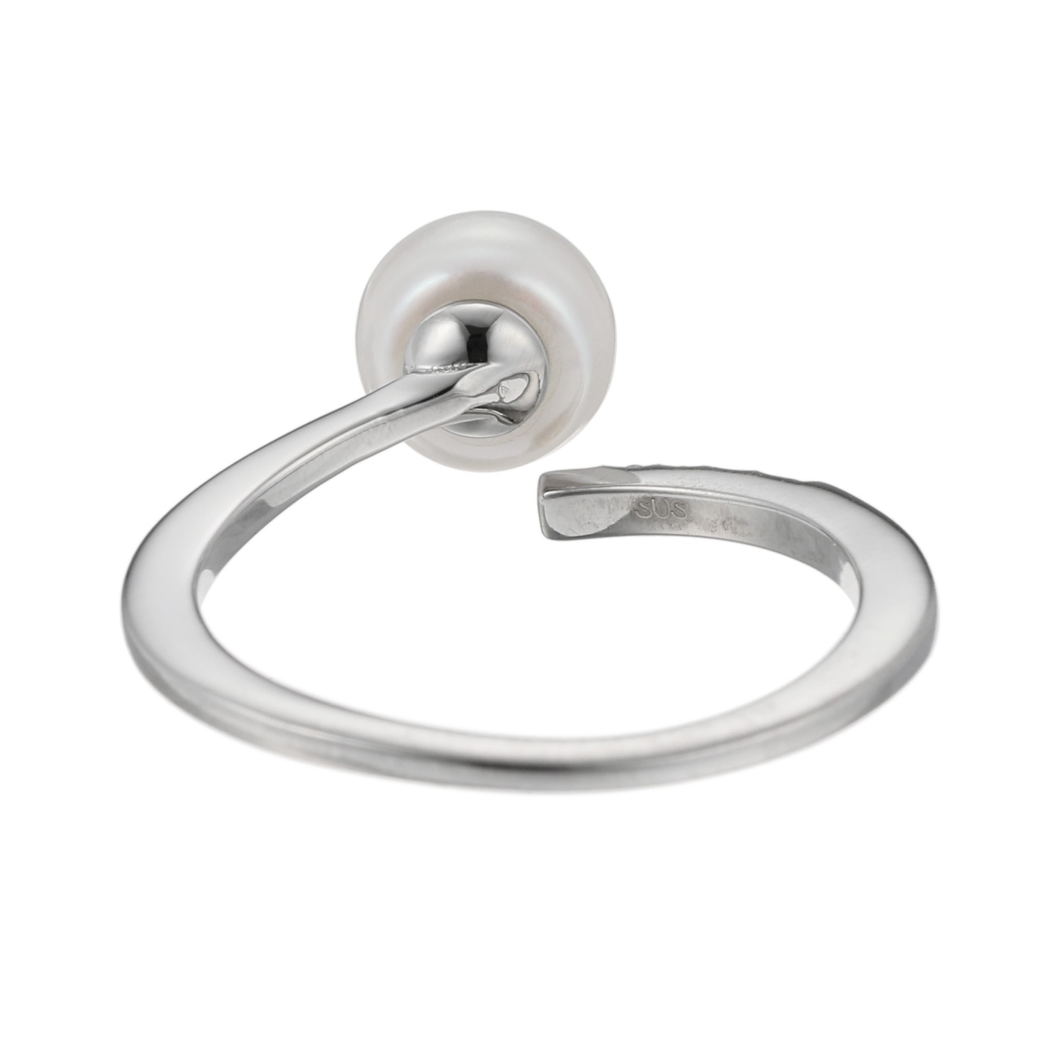 サージカルステンレスを使用し、淡水パールとCZをあしらったリングです。