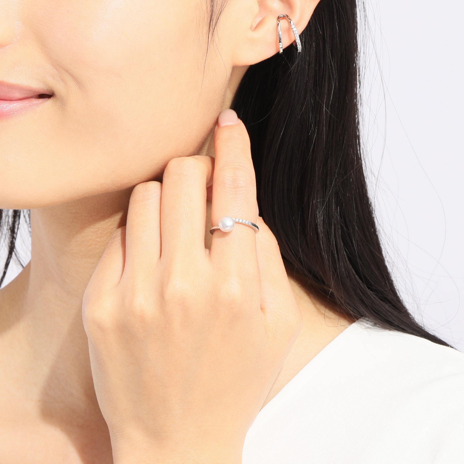 ステンレス特有の高級感のある光沢とCZの輝き、淡水パールならではの上品なテリが相まって、リュクス感を演出してくれるジュエリーです。