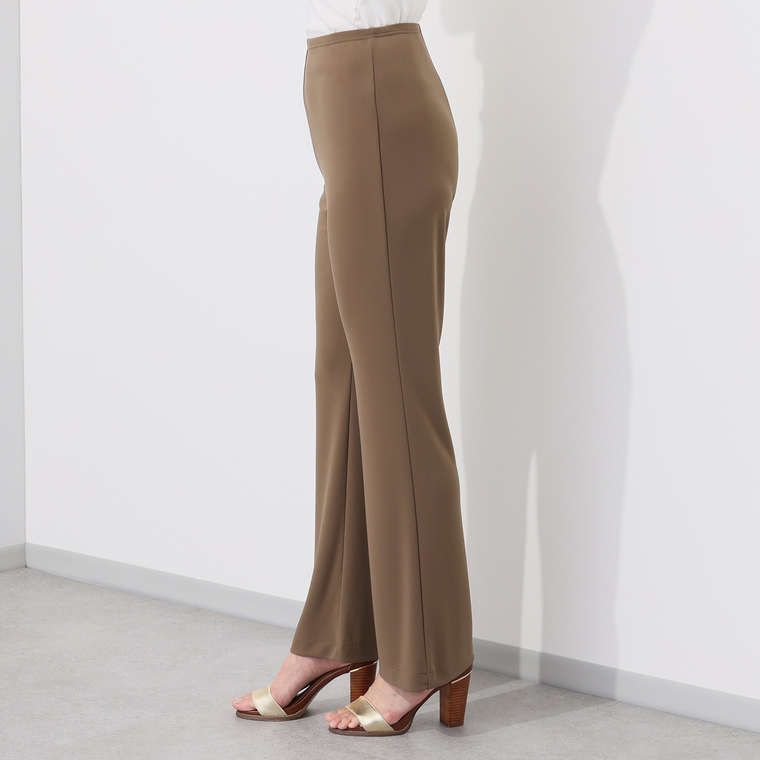 裾にかけて広がるセミフレアーシルエットにより、スタイリングが柔らかに華やぎます。
