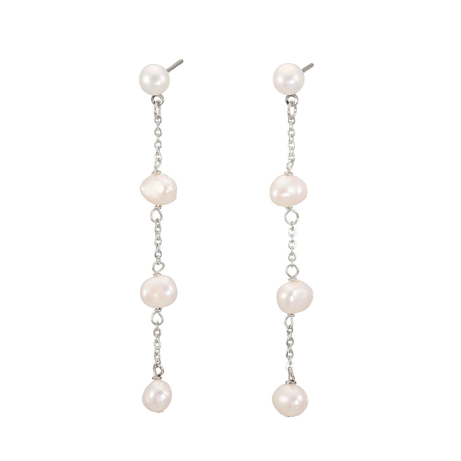 繊細なチェーンで繋いだバロックパールが、お顔の横で軽やかにスウィング。