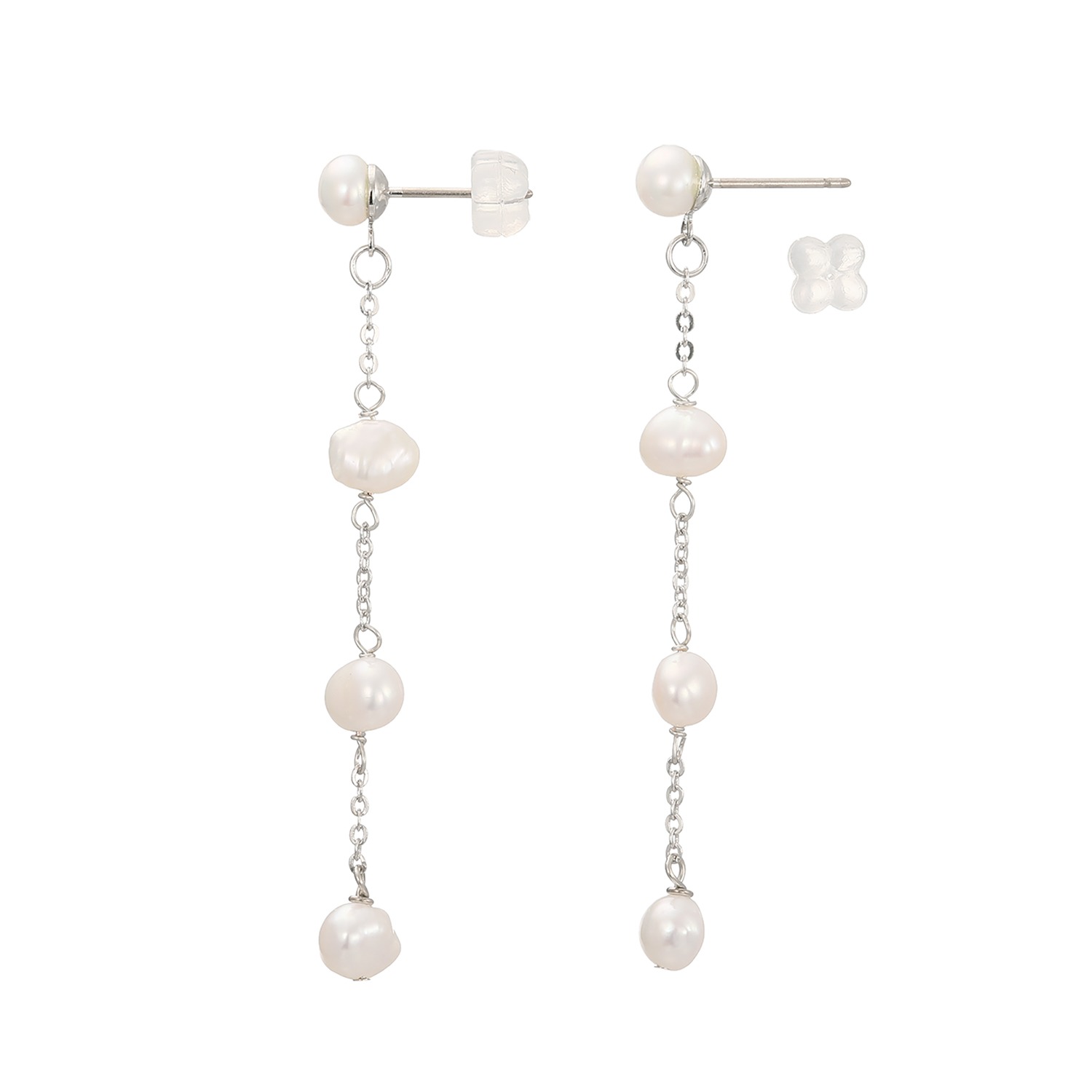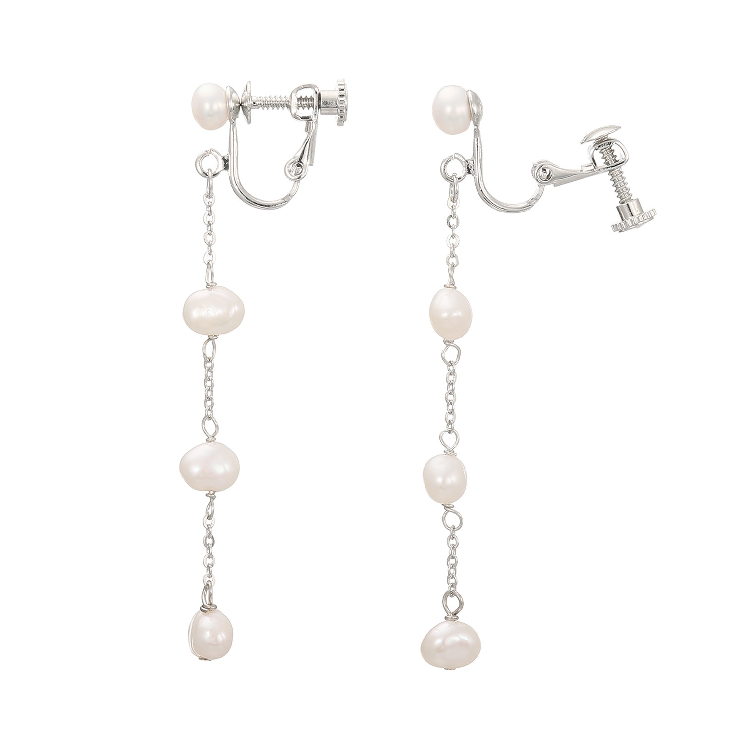異なるシェイプのベビー淡水パールを組み合わせた、イヤリング/ピアスです。