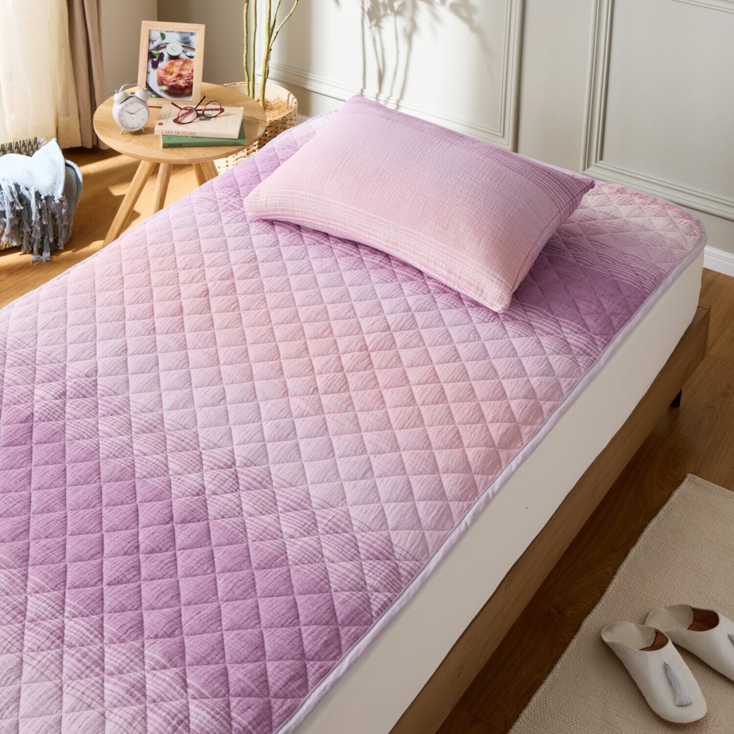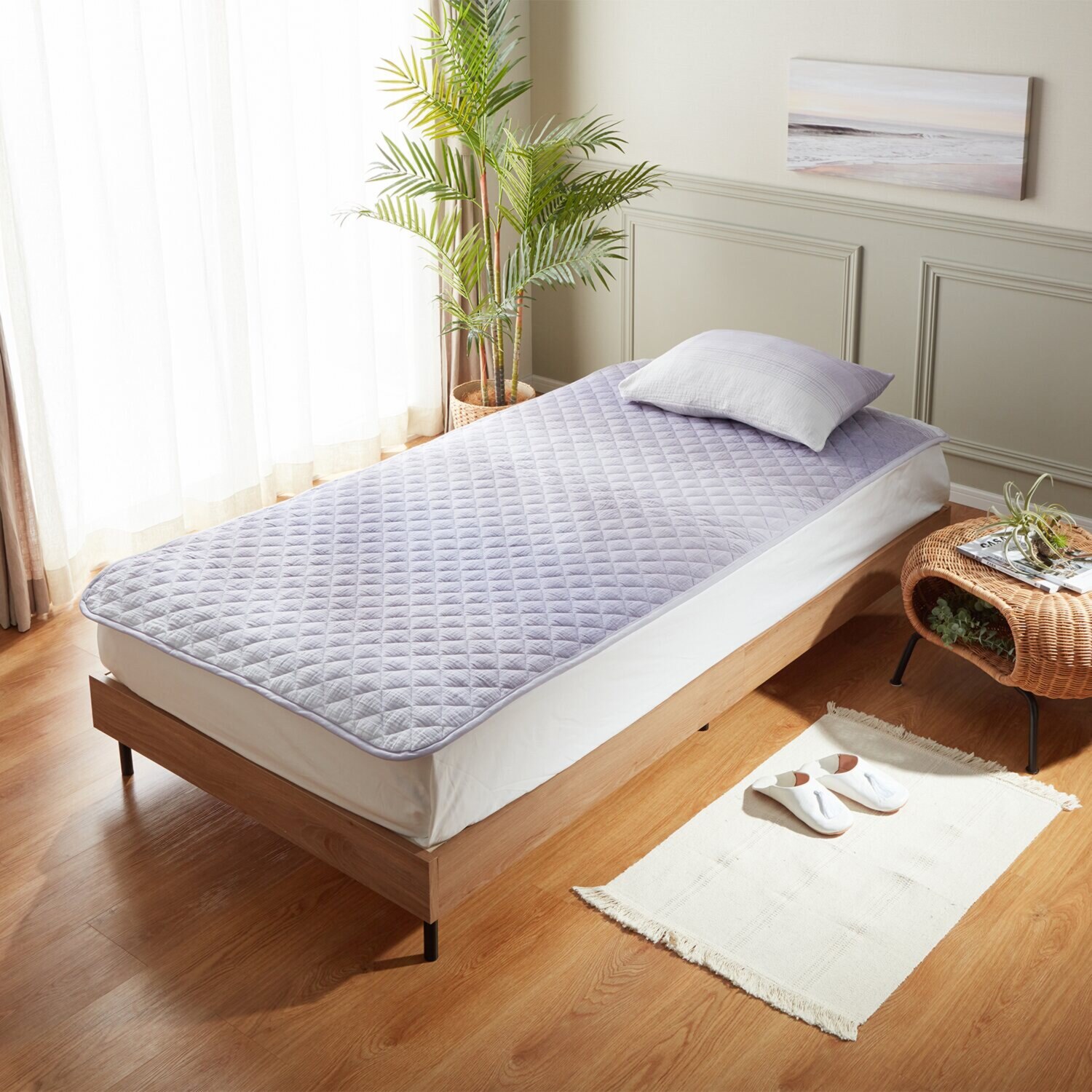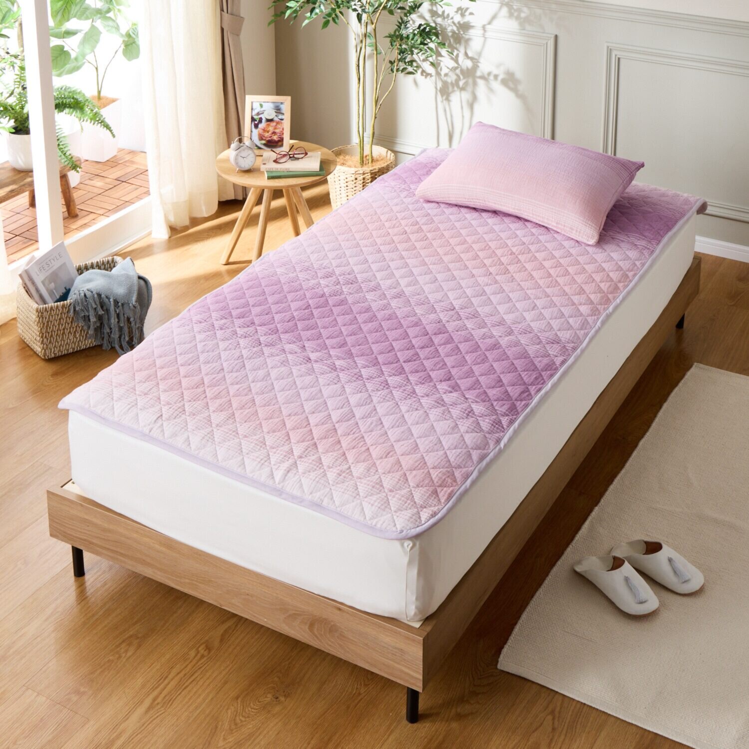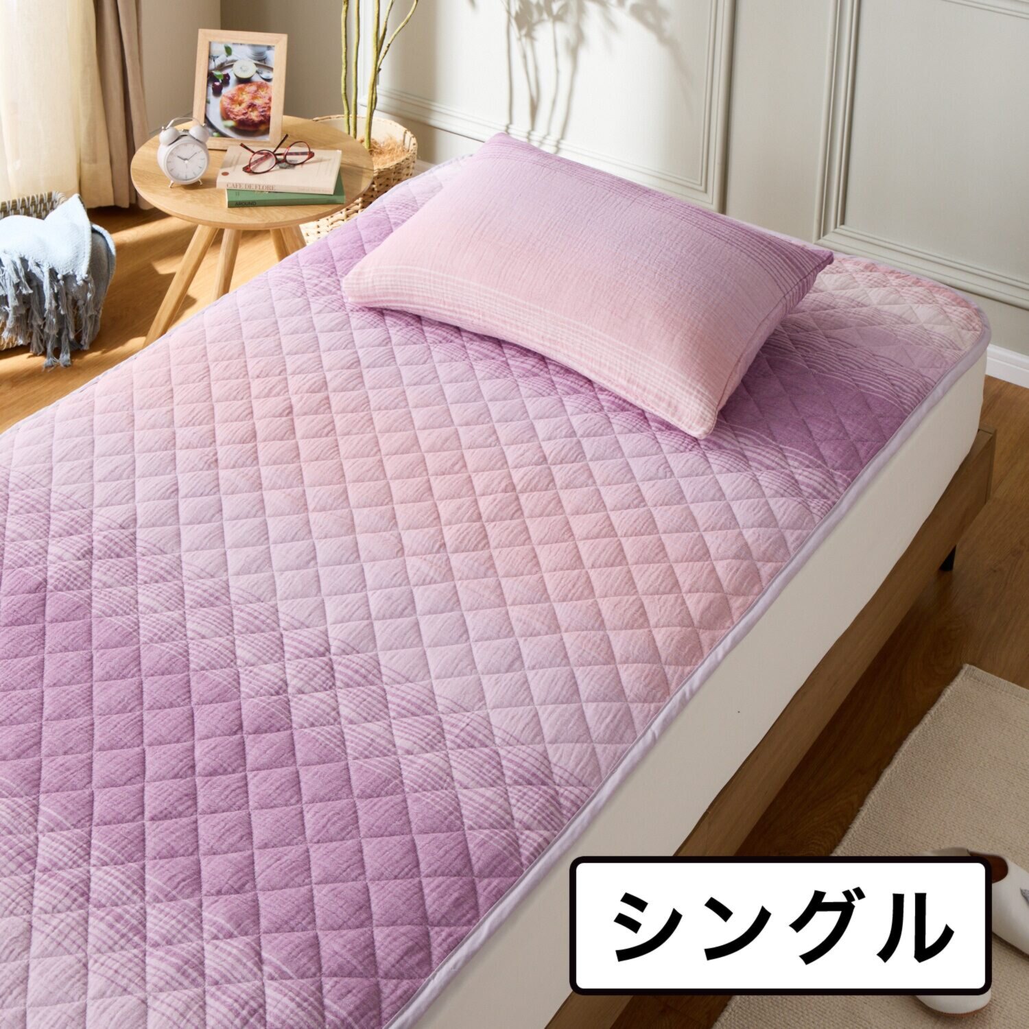 気温がだいぶ上がってきたタイミングで、冬物の敷パッドをこれに交換しました。綿素材の安心感で癒されます。肌に触れても冷たいと感じることがありません。かと言って熱が上手く逃げるので布団の中が暑くなり過ぎない感じで、夏も気持ちよく使えそうです。パープルは落ち着いたカラーで気にいりました。ベージュのグラデーションがあると男女選ばず使えそうなので、今後ご検討ください。何年も長持ちしてくれることを期待しています。