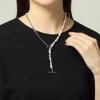 留め具の位置を変えて淡水パールとメタルのバランスを変えたり、バーをトグルに通してY字にしたりと、さまざまなアレンジが楽しめます。