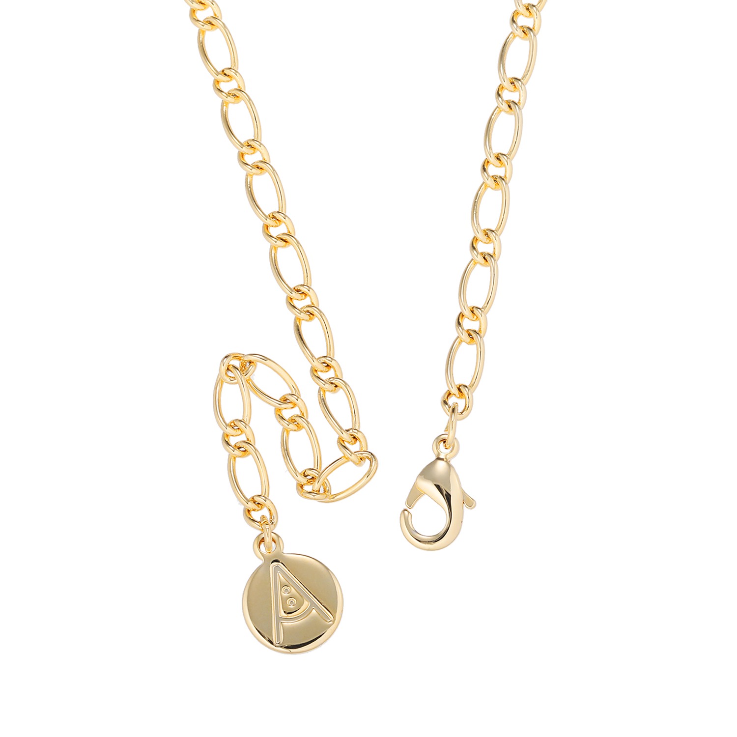 チェーンはたっぷりとした長さのある、コマが大きめなフィガロチェーンを採用。