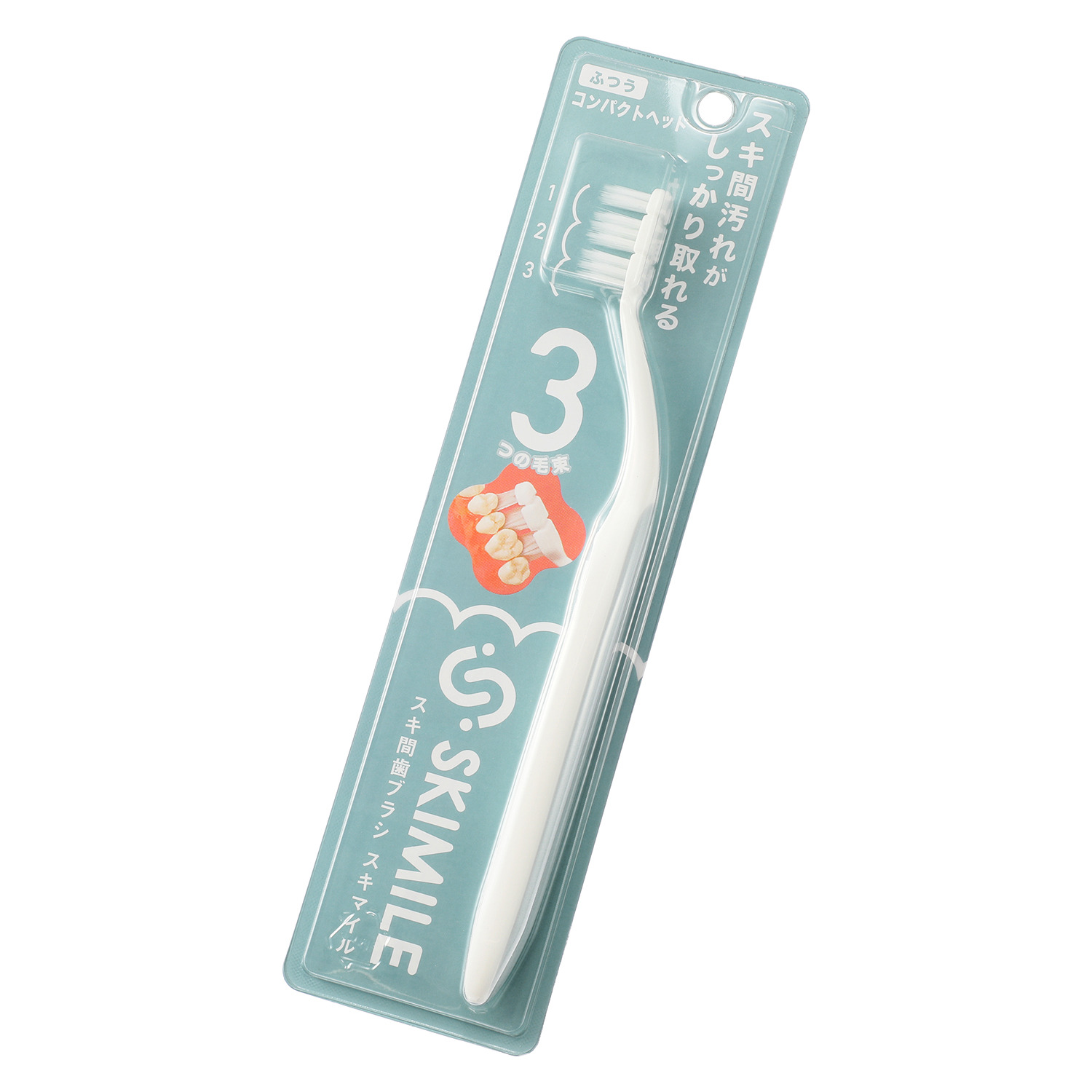ヘッドのブラシが3つの毛束に分かれて、毛が歯間に入り込み、スキマの汚れが落としやすい構造になっています。