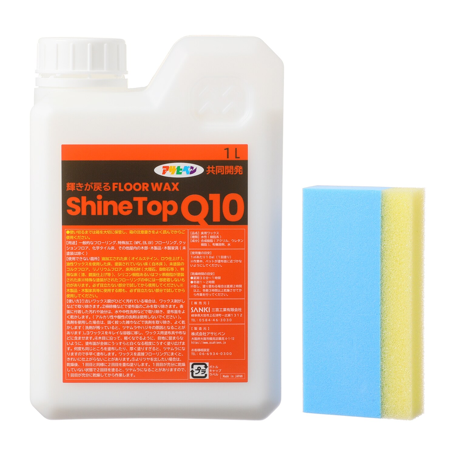 塗布用スポンジ付で サッと塗り伸ばし 乾かすだけ簡単! 輝きが戻るフロアワックス シャイントップQ10 <1リットル>