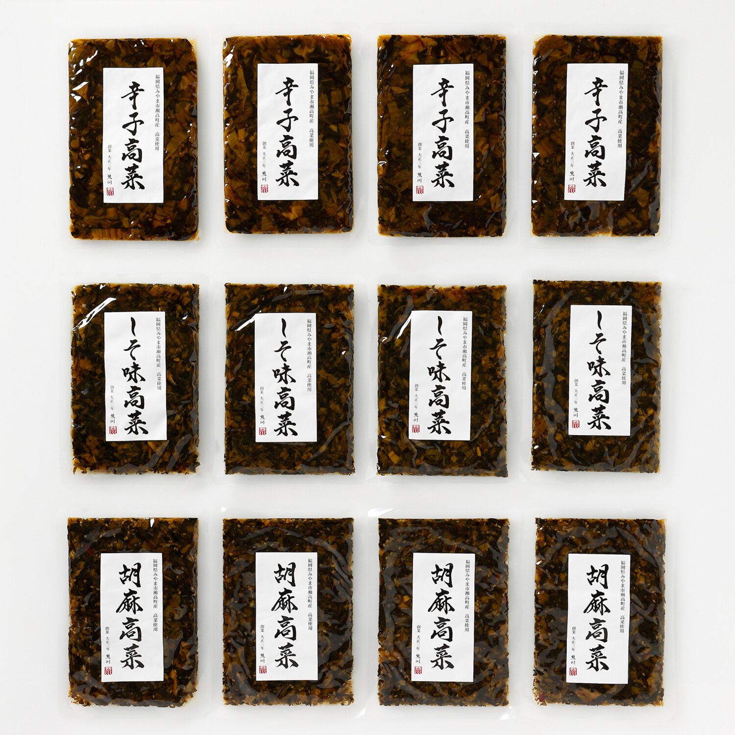 福岡県瀬高(せたか)産の“三池高菜(みいけたかな)”を使った高菜漬けの3種セットのご紹介。