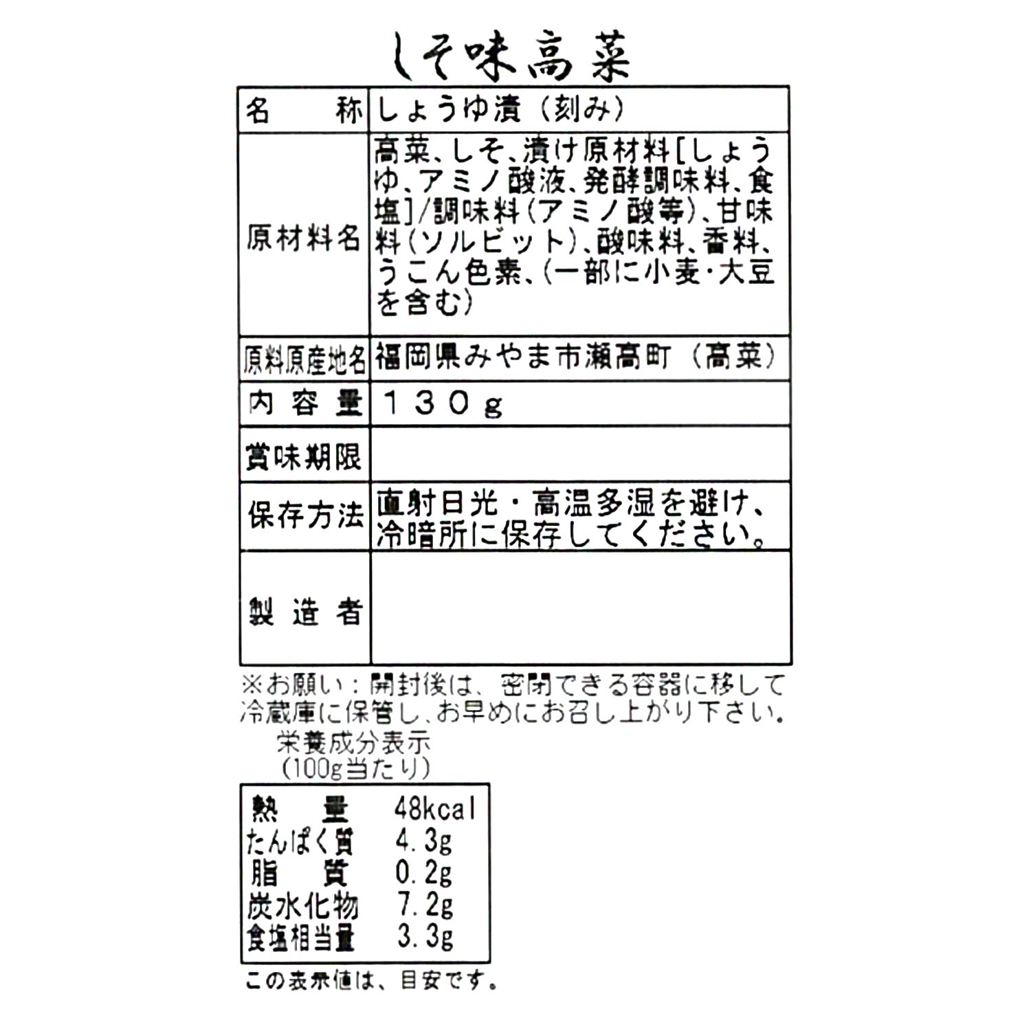 <しそ味高菜>