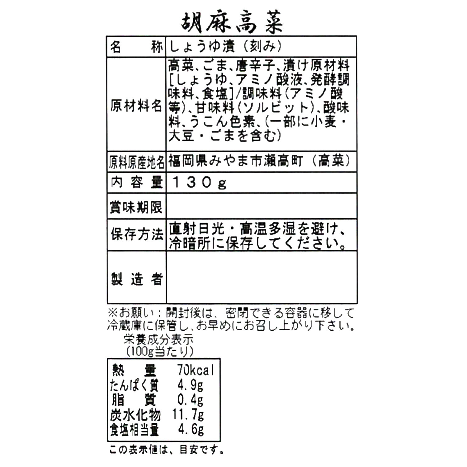 ・胡麻高菜130g
