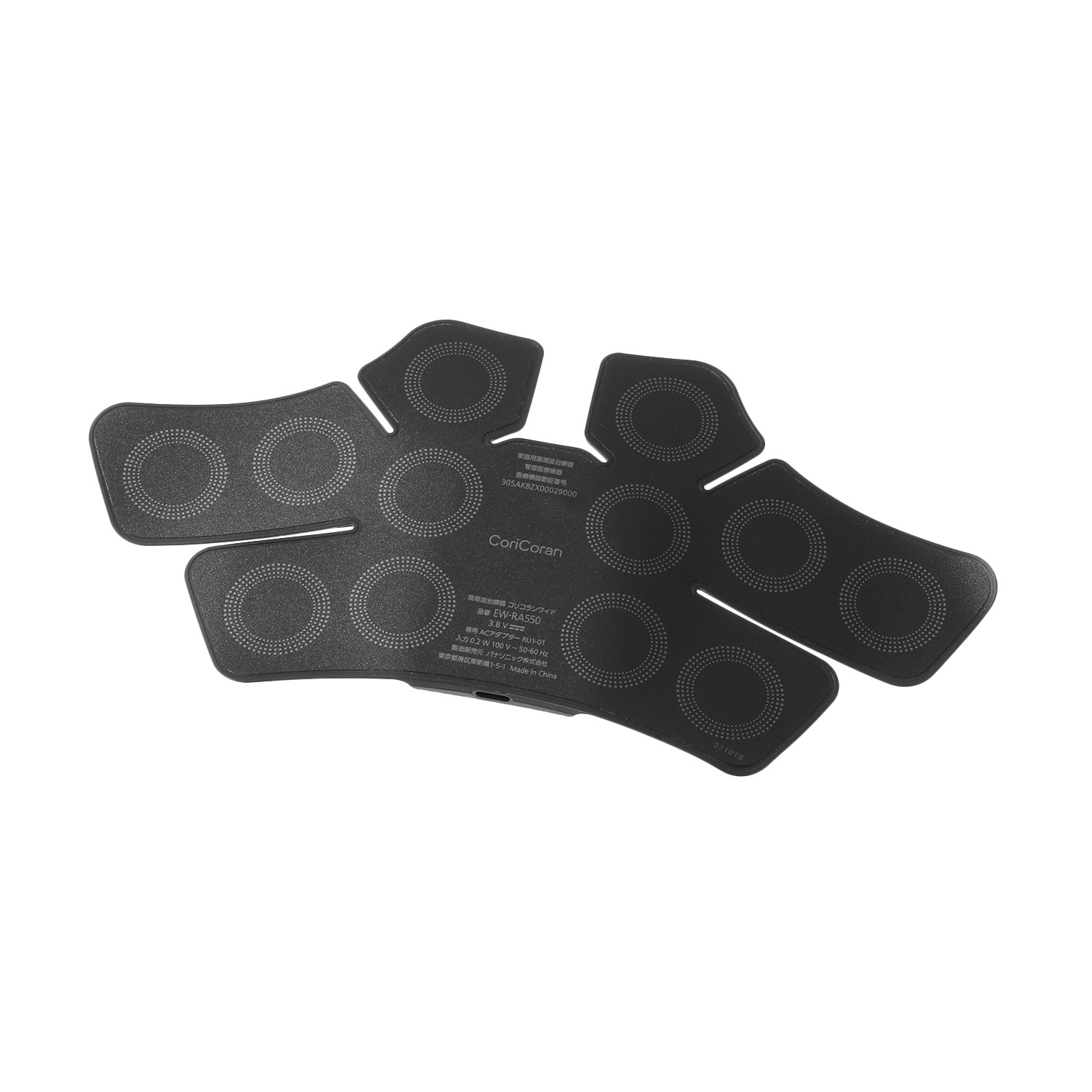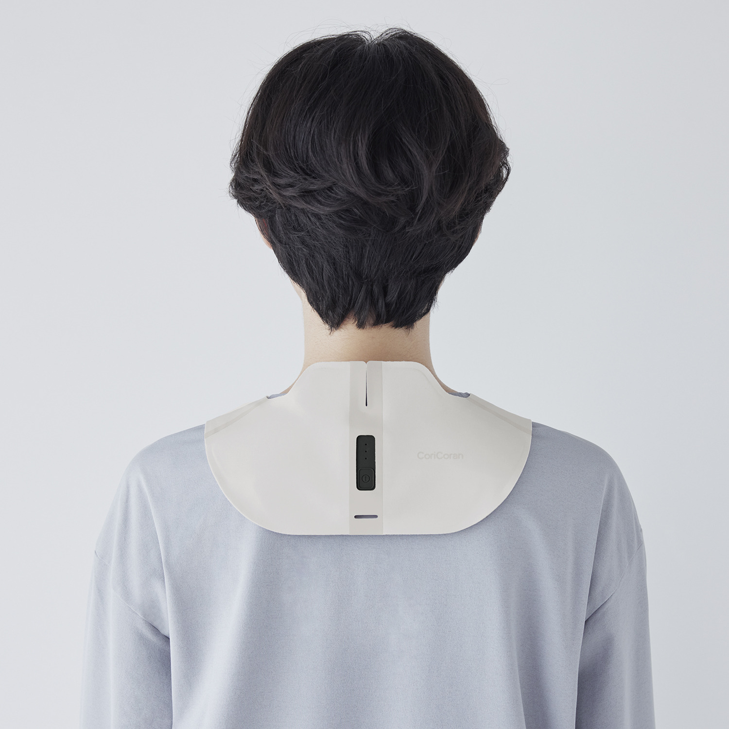 肩や腰まわりのコリの治療範囲を広げ、服を羽織るような感覚で毎日使用できることを目指して開発され、その厚さや重さ、アタッチメントの生地や色合いまで考え抜かれたコリコランワイド。